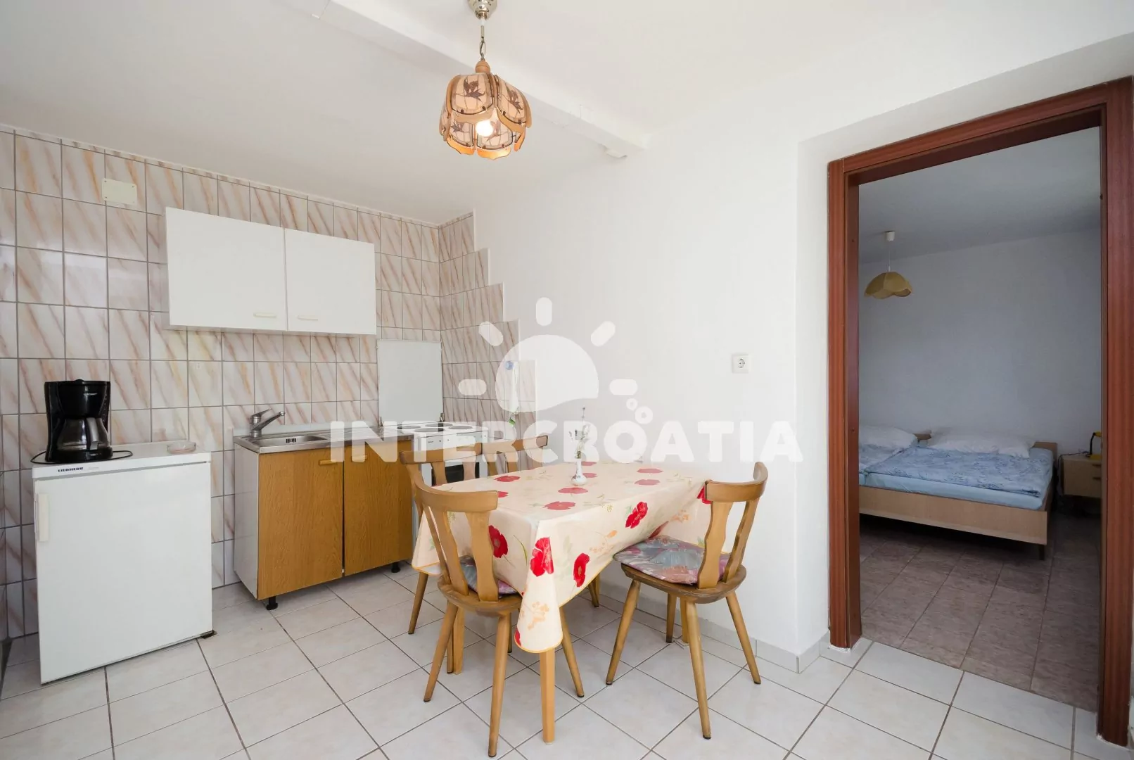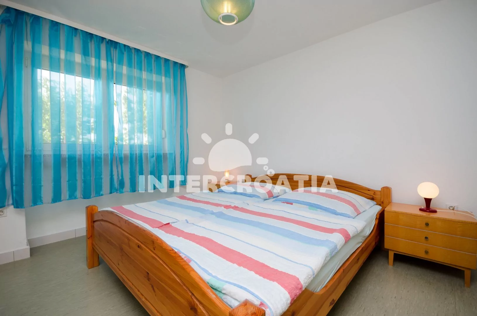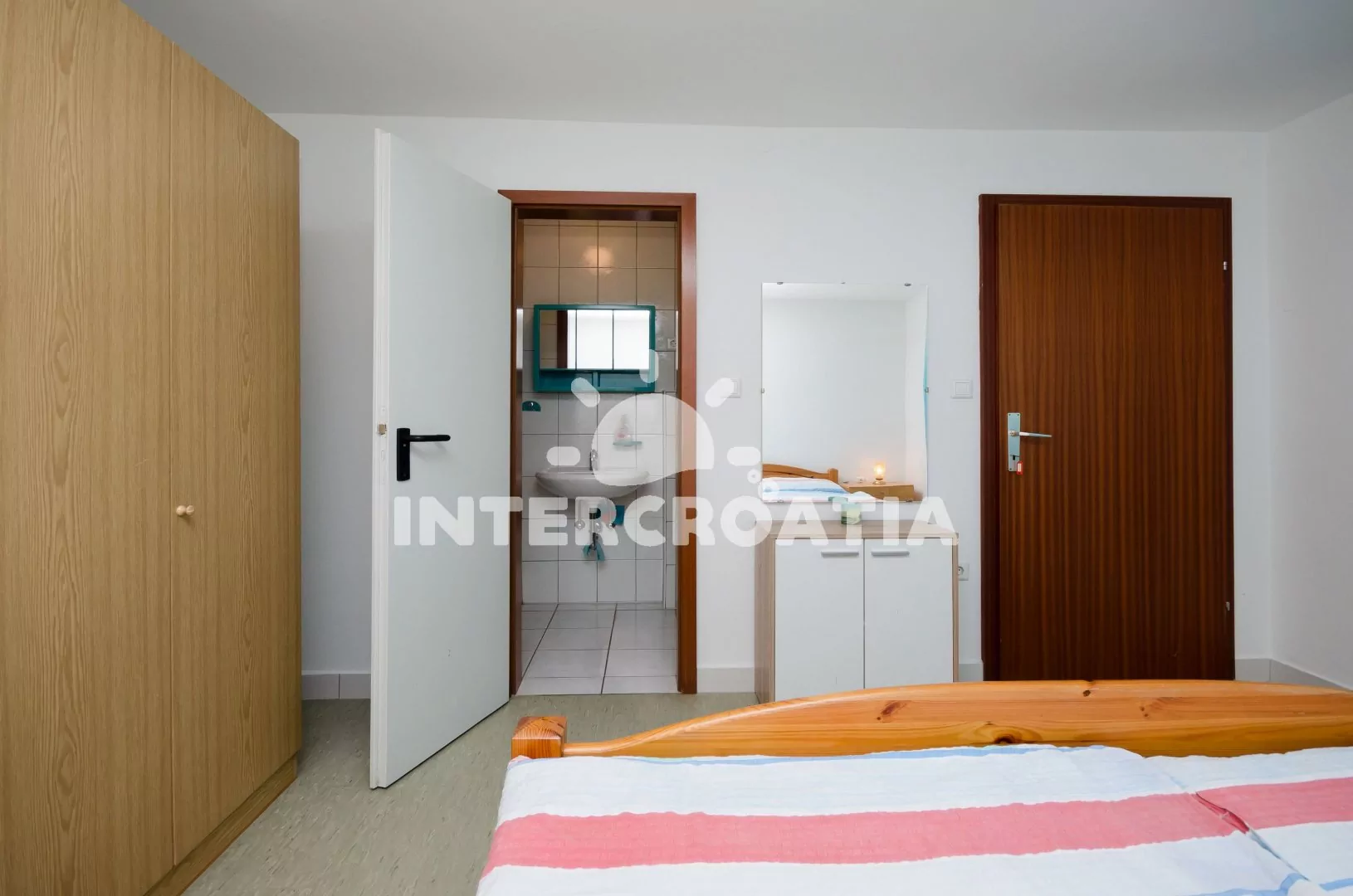 Prázdninový byt se 2 ložnicemi a 2 malými koupelnami. Krásný výhled na Krk a zahradu s čerstvým ovocem (samoobsluha v ceně) - rekreační byt je jednoduchý standard bez klimatizace, bez TV, bez fénu. Nám to ale nevadilo.