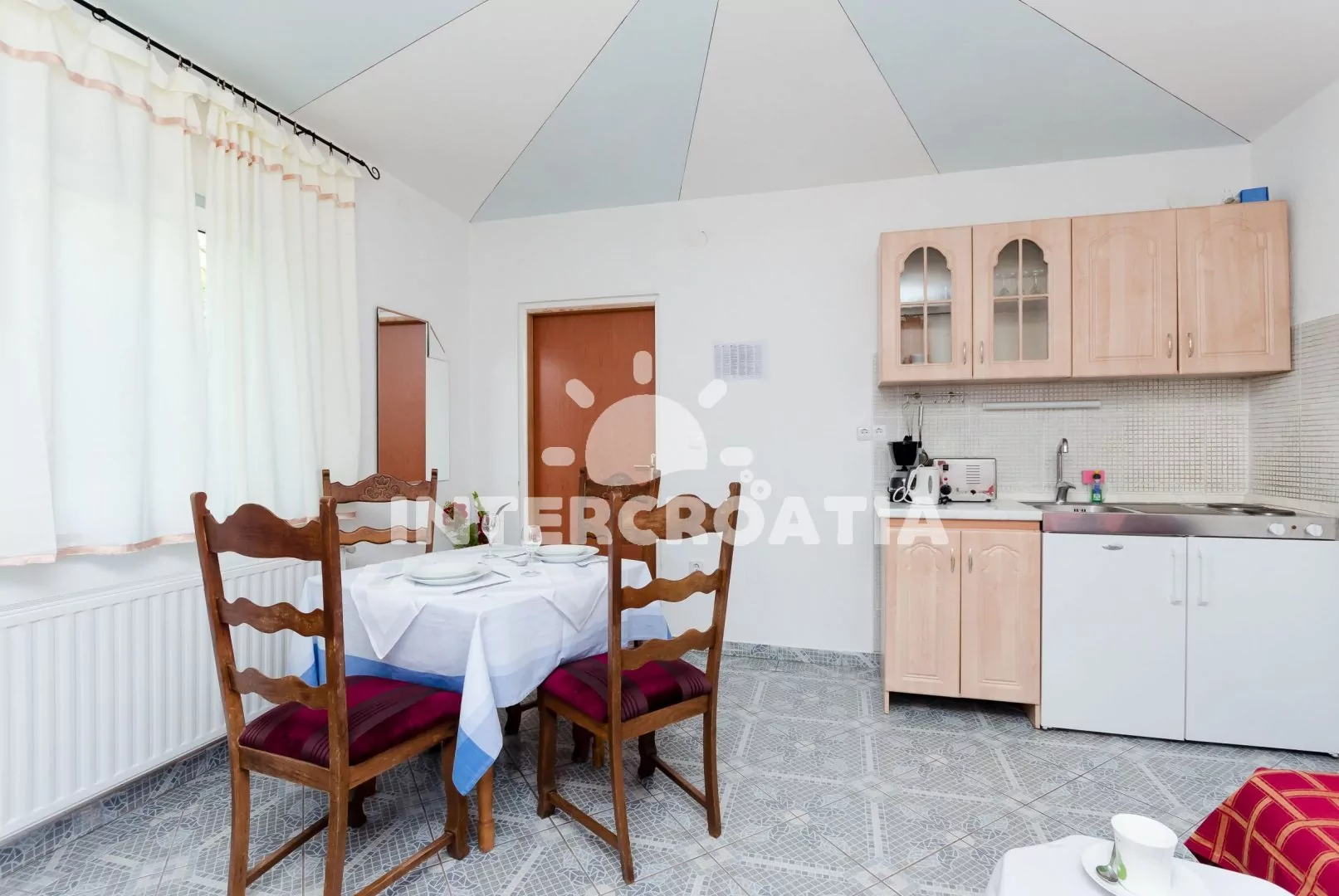 Apartmán s terasou se nachází v přízemí domu a je vhodný pro 2 až 4 osoby. Obývací pokoj je spojený s kuchyní. Kuchyňská linka s elektrickým dvouplotýnkovým sporákem, rychlovarnou konvicí, kávovarem,…