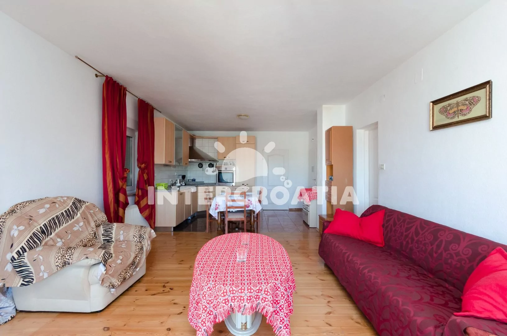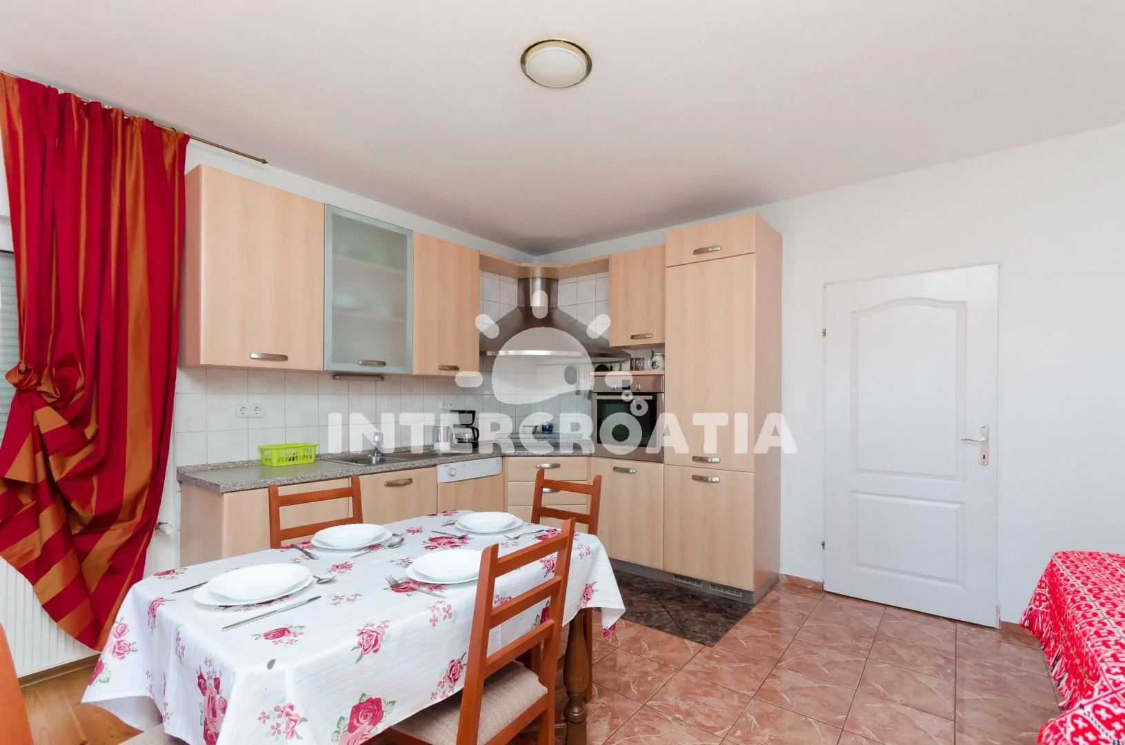 Apartmán s balkonem a venkovním posezením se nachází v druhém patře domu a je vhodný pro 2 až 4 osoby. Obývací pokoj je spojený s kuchyní. Kuchyňská linka se sklokeramickou varnou deskou, digestoří,…