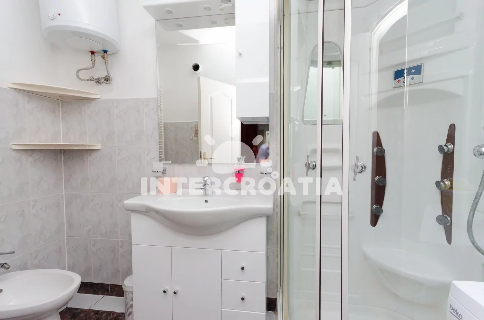 Apartmán s balkonem a venkovním posezením se nachází v druhém patře domu a je vhodný pro 2 až 4 osoby. Obývací pokoj je spojený s kuchyní. Kuchyňská linka se sklokeramickou varnou deskou, digestoří, vestavěnou troubou, rychlovarnou konvicí, nádobím a lednicí s mrazákem. Obývací pokoj s jídelním stolem pro 4 osoby, sedací soupravou, pohovkou (rozložitelná na extra lůžko pro 2 osoby), televizí se satelitním programem, klimatizací a vstupem na balkon. Ložnice je vybavena jedním dvoulůžkem. Koupelna se sprchovým koutem, pračkou, umyvadlem, bidetem a wc. Hostům je k dispozici parkování u objektu zdarma.