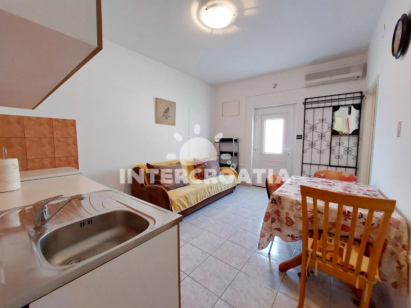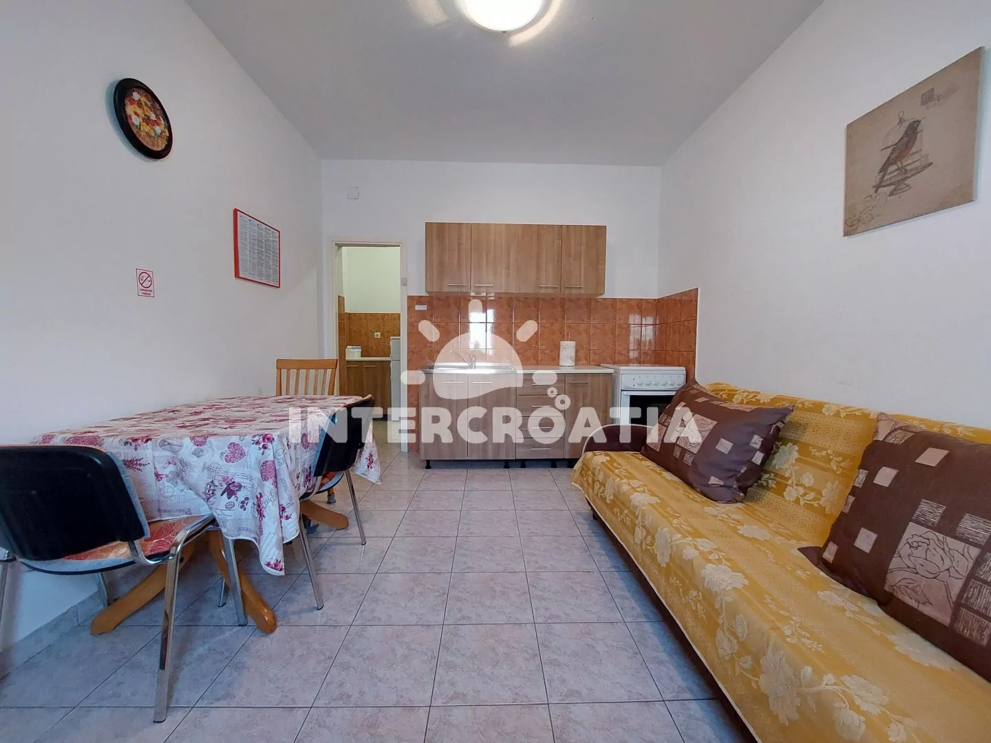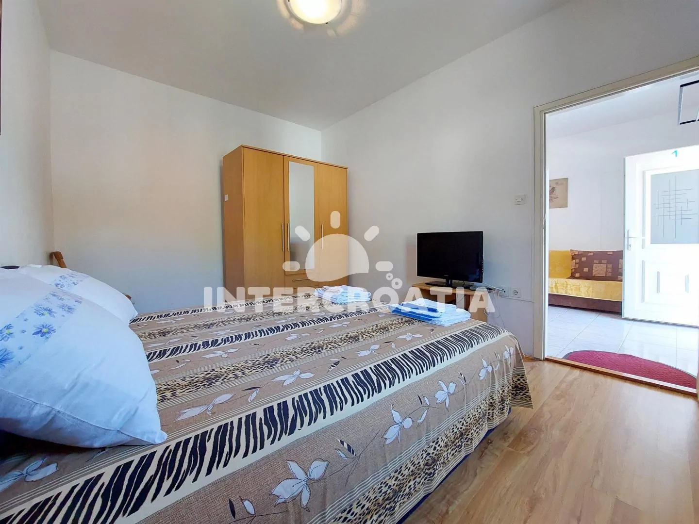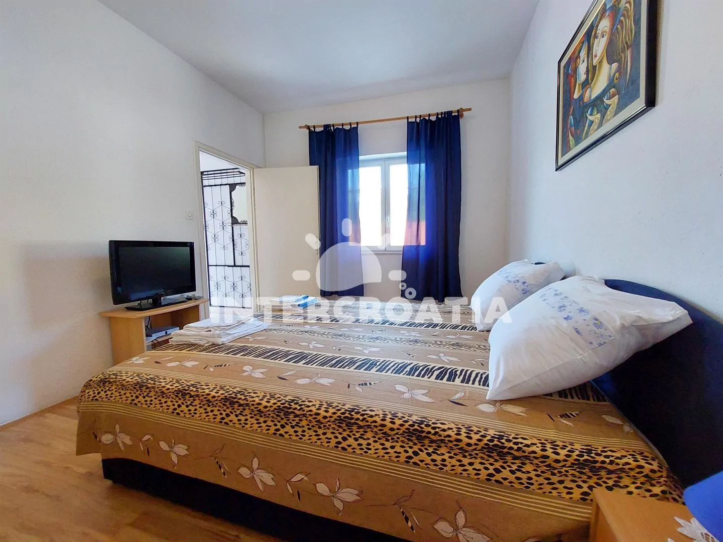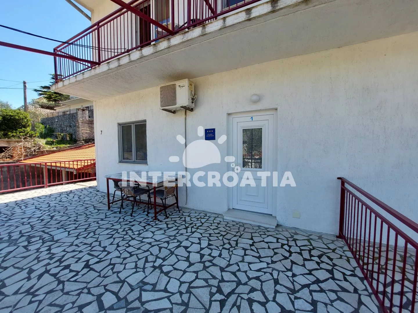Apartmán s terasou se nachází v přízemí domu je vhodný pro 2 až 3 osoby. Obývací pokoj je spojený s kuchyní. Kuchyňská linka se sporákem, troubou, nádobím a lednicí s mrazákem. Obývací pokoj s jídelním stolem pro 3 osoby, pohovkou (rozložitelná na extra lůžko pro 1 osobu) a klimatizací. Ložnice s dvoulůžkem a televizí se satelitním programem. Koupelna s vanou, sprchovou zástěnou, umyvadlem, bidetem a wc. Hostům je k dispozici parkování u objektu zdarma.
