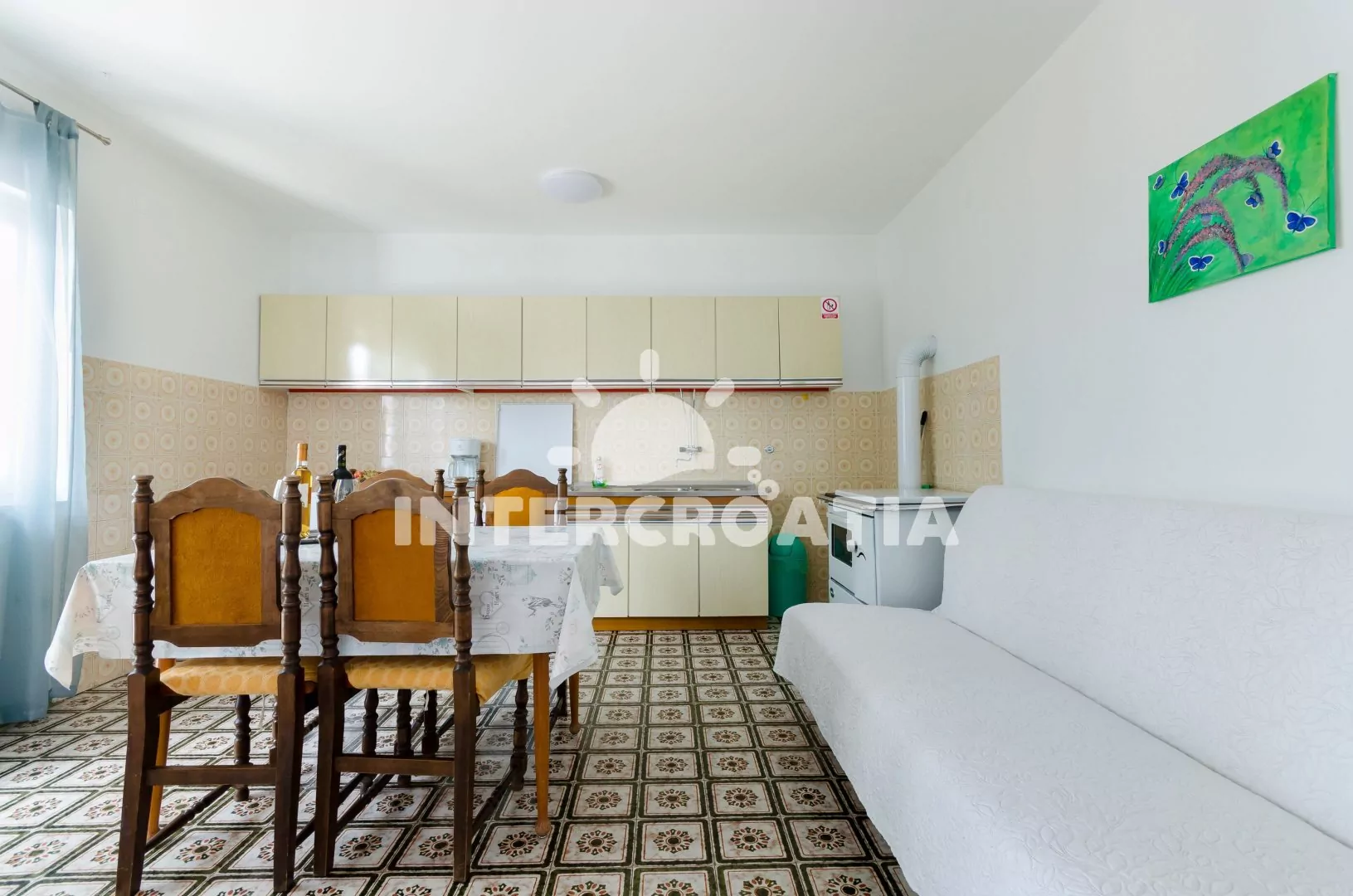 Apartmán (70 m2) s vlastním balkonem a výhledem na moře se nachází v prvním patře domu a je vhodný pro 4 až 5 osob. Obývací pokoj je spojený s kuchyní. Kuchyňská linka je vybavena sporákem, troubou,…