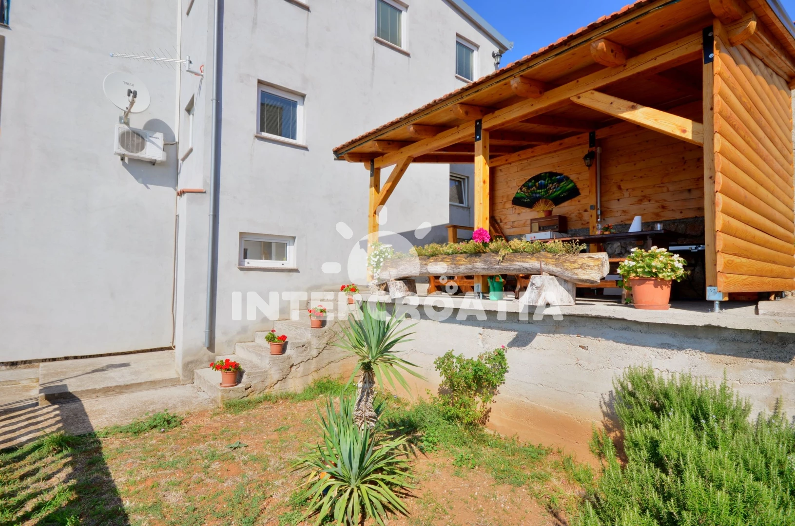 Vzdálenosti: Moře a skalnatá-oblázková pláž 300 m (cesta se schody), centrum, supermarket, veřejná doprava, lékárna, ambulance, směnárna, čerpací stanice, banka, pošta, muzeum, potápění, diskotéka 1 km, restaurace, bar 300 m, letiště, trajekt 64 km.