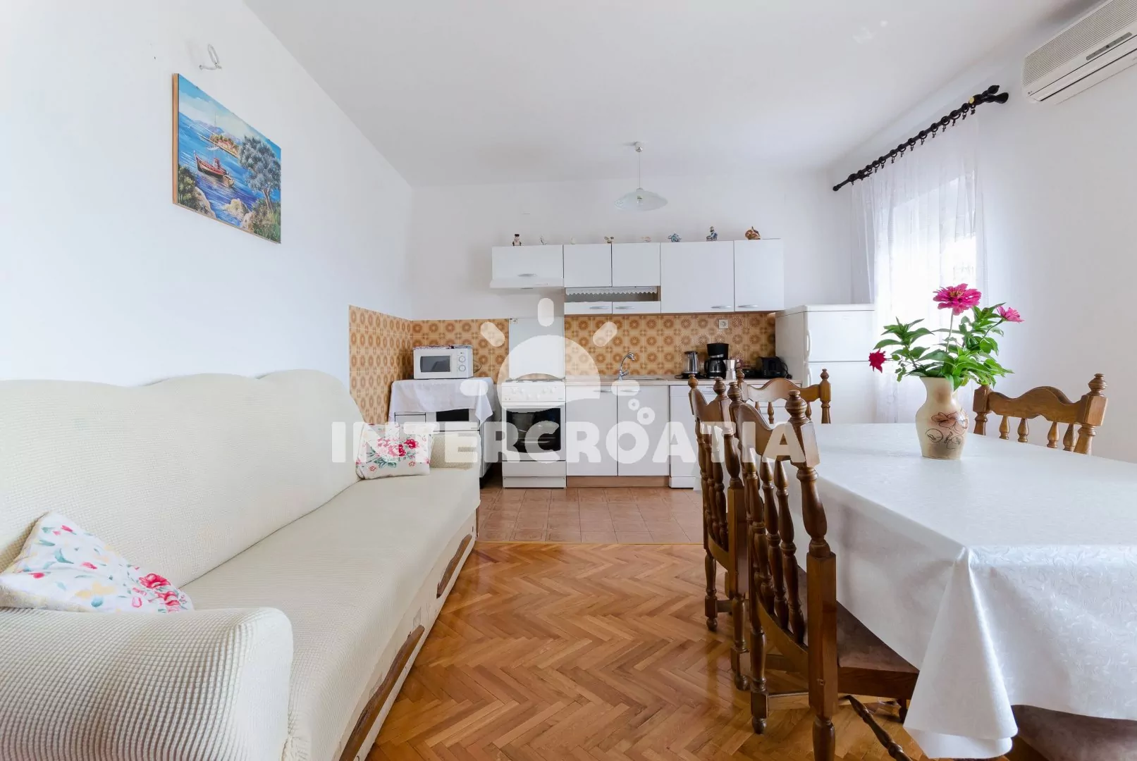 Samostatně stojící dům se zahradou a dvěma apartmány, nacházející se 700 m pěší chůzí od moře a pláže. Apartmány jsou klimatizované a disponují lodžiemi s venkovním posezením. Možnost grilování. Parkovací místa pro automobily přímo u domu.