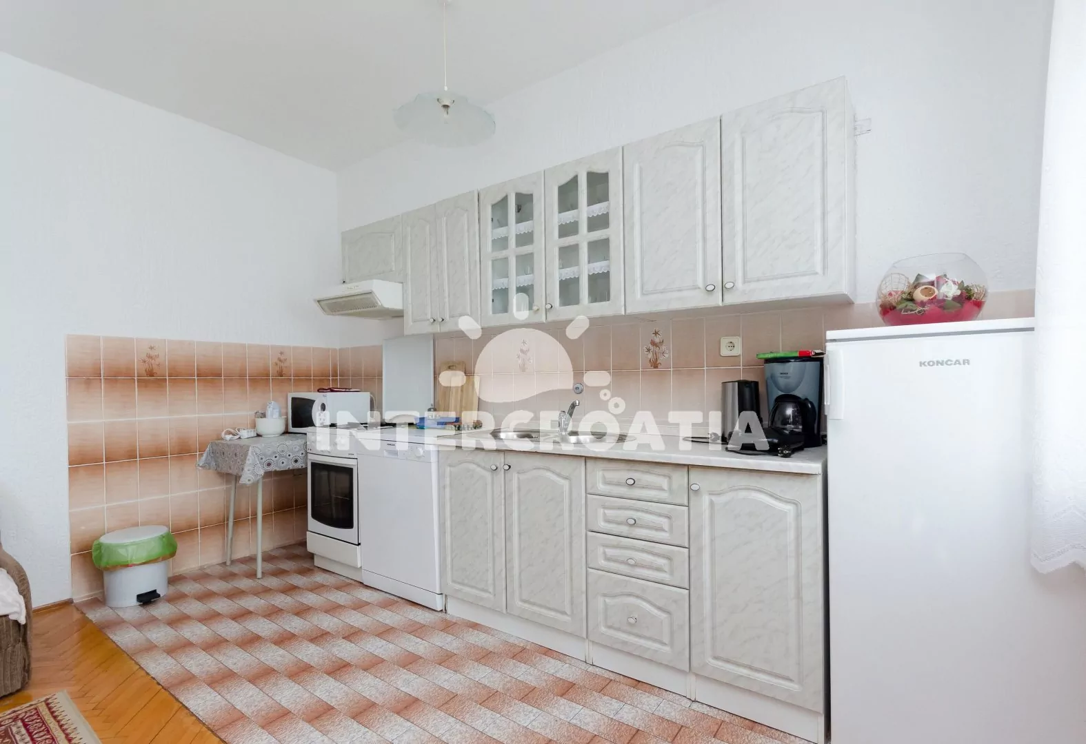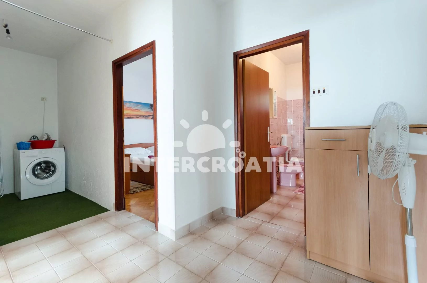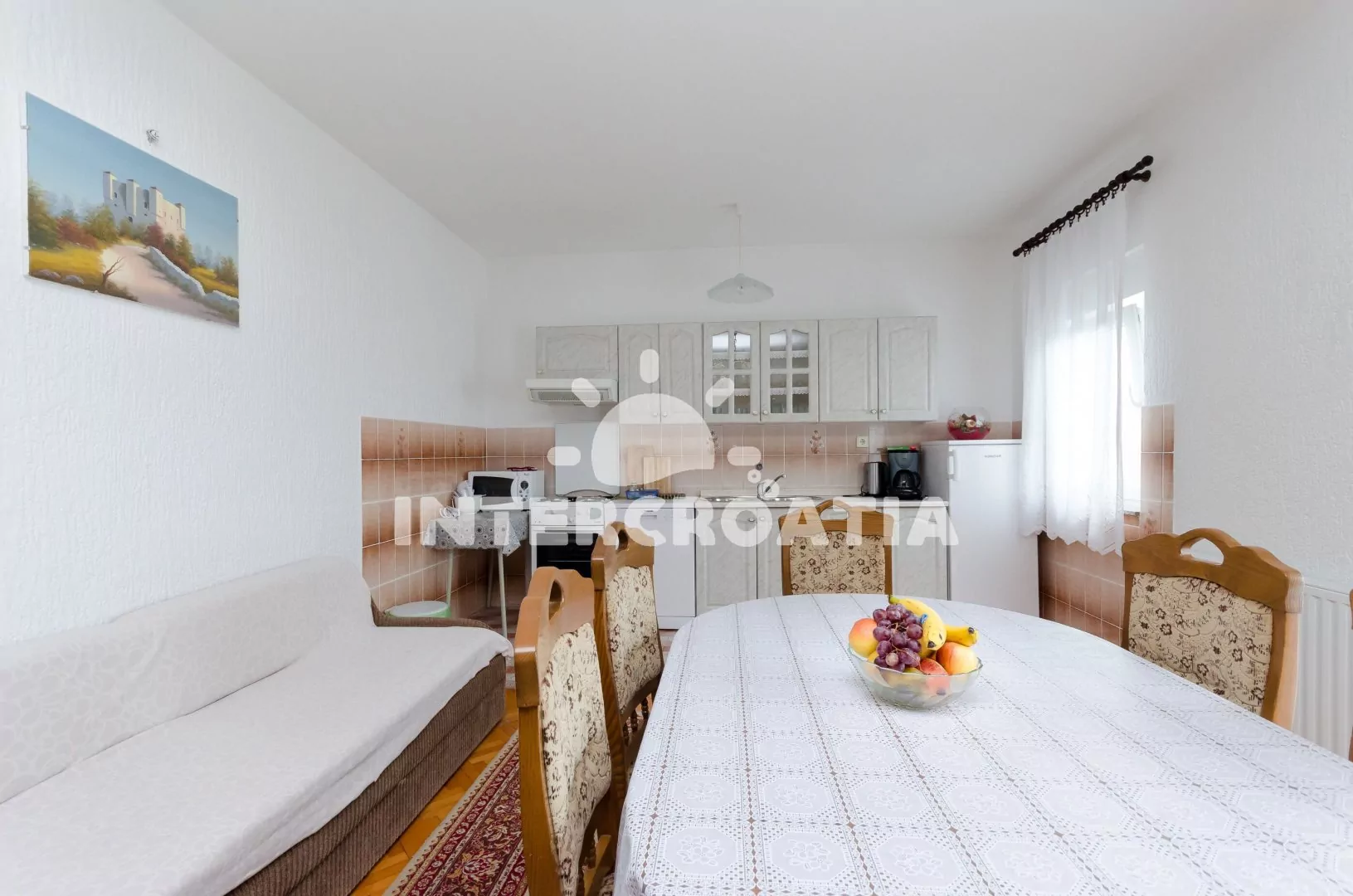 Samostatně stojící dům se zahradou a dvěma apartmány, nacházející se 700 m pěší chůzí od moře a pláže. Apartmány jsou klimatizované a disponují lodžiemi s venkovním posezením. Možnost grilování. Parkovací místa pro automobily přímo u domu.