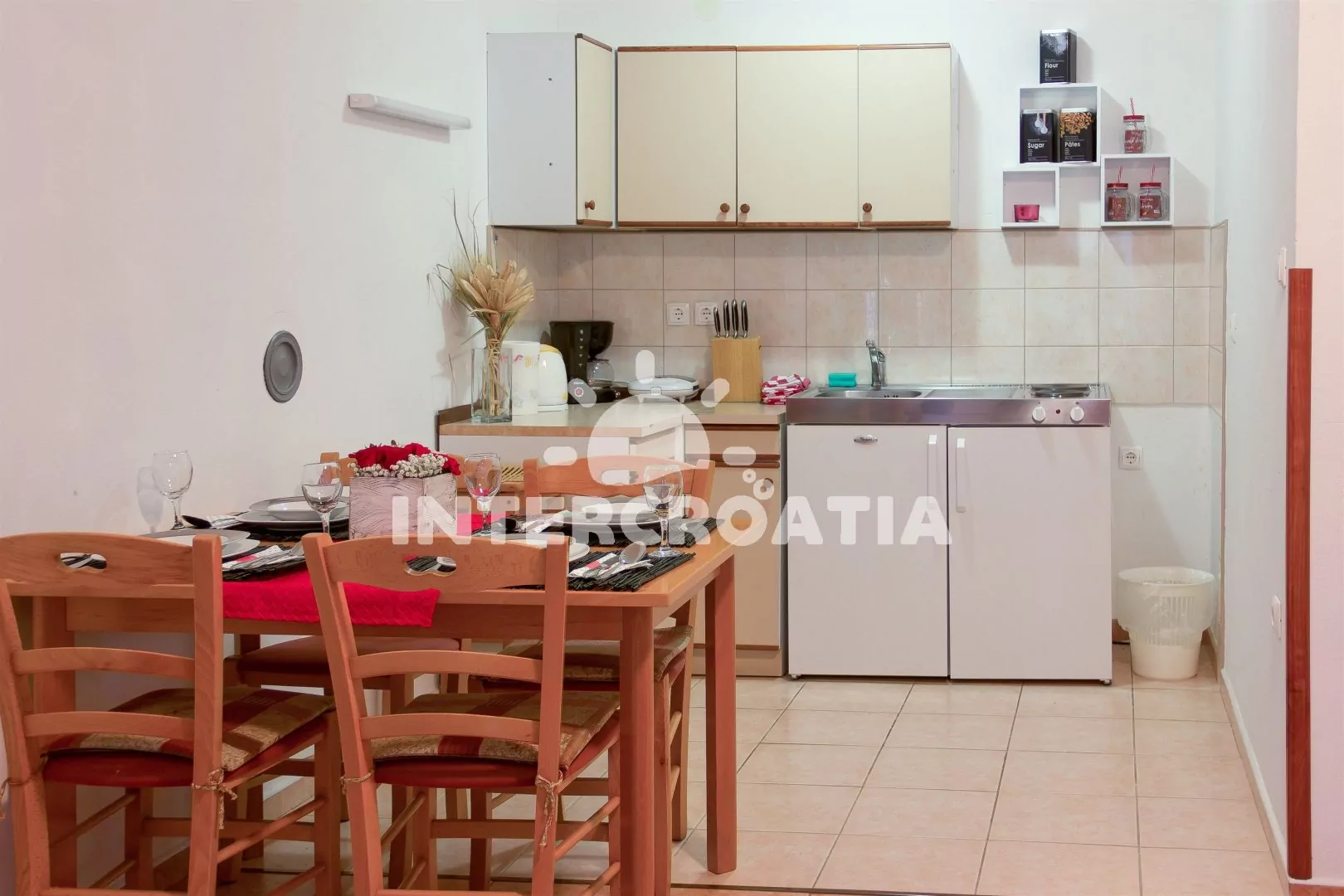 Vzdálenosti: Moře a pláž 900 m, supermarket 400 m, centrum 600 m, ambulance 100 m, restaurace, lékárna, bar, diskotéka, muzeum, veřejná doprava, potápění, půjčovna motorových člunů. směnárna a banka 800 m, čerpací stanice 1 km, mini golf 10 km, přístav, bazén a tenisové kurty 35 km, letiště (Rijeka) 50 km.