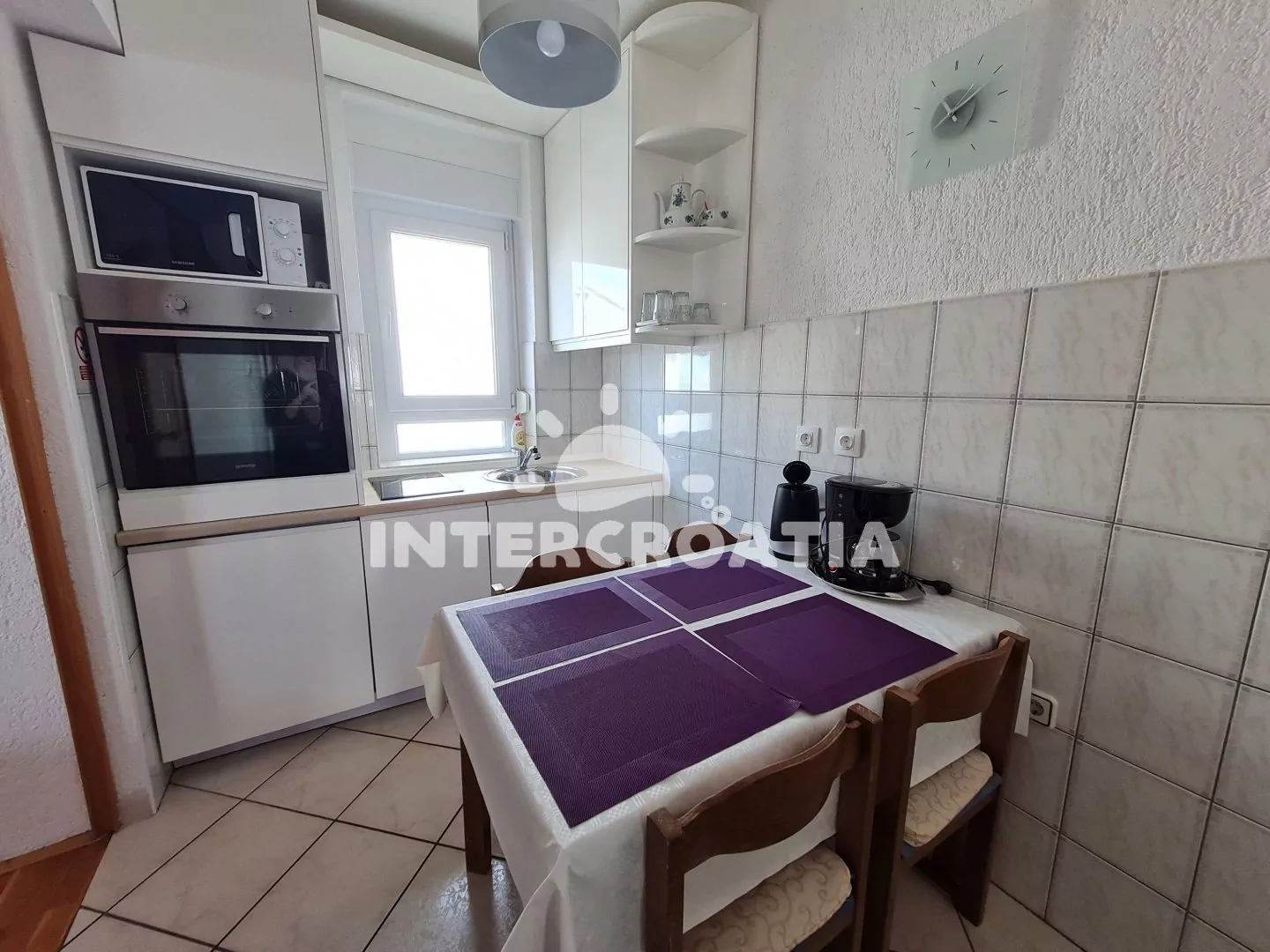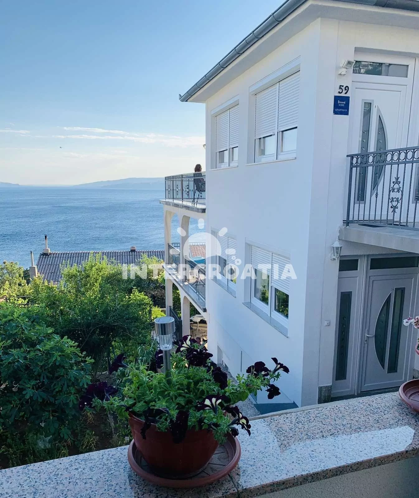 Vzdálenosti: Moře a oblázková pláž 250 m (cesta se schody), centrum 700 m, market 250 m, pošta 600 m, lékárna 600 m, nemocnice 600 m, restaurace 200 m, směnárna 600 m, muzeum 700 m, banka 600 m, potápěčský klub 3 km, kotviště pro čluny 600 m, tenisové kurty 12 km, venkovní bazén 25 km, vnitřní bazén 25 km, diskotéka 700 m, bar 200 m, čerpací stanice 400 m, veřejná doprava 600 m, trajekt (Rijeka) 45 km, letiště (Rijeka) 35 km.
