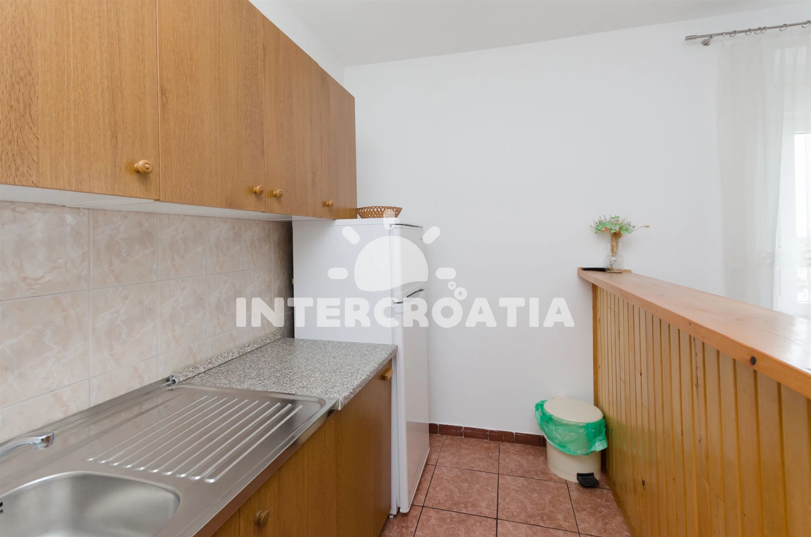 Vzdálenosti: Moře 500 m, pláž 700 m (skalnatá, oblázková, větší kamení a betonové desky), supermarket 200 m, čerpací stanice 350 m, muzeum 400 m, veřejná doprava 400 m, lékárna 400 m, diskotéka 400 m, směnárna 400 m, banka 400 m, pošta 400 m, bar 400 m, restaurace 400 m, kotviště pro čluny 500 m, centrum 500 m, ambulance 500 m, půjčovna motorových člunů 500 m, letiště (Rijeka) 50 km, trajekt (Rijeka) 75 km,