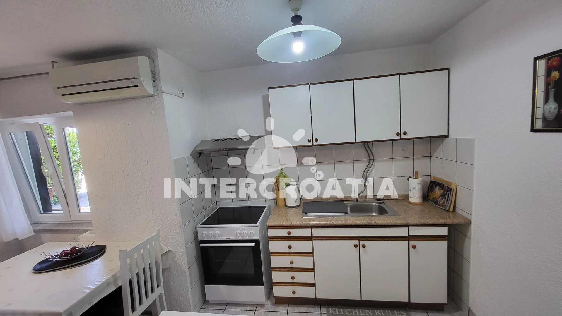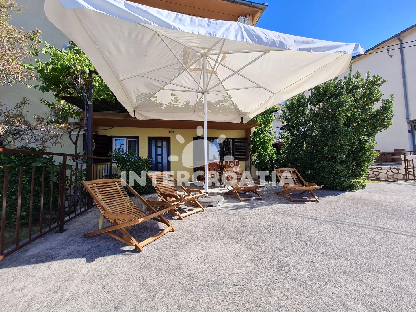 Apartmán se nachází 200 m od moře a pláže. Pláž je oblázková a betonové desky. U objektu je k dispozici společná zahrada s posezením a grilem. Parkování je před domem.