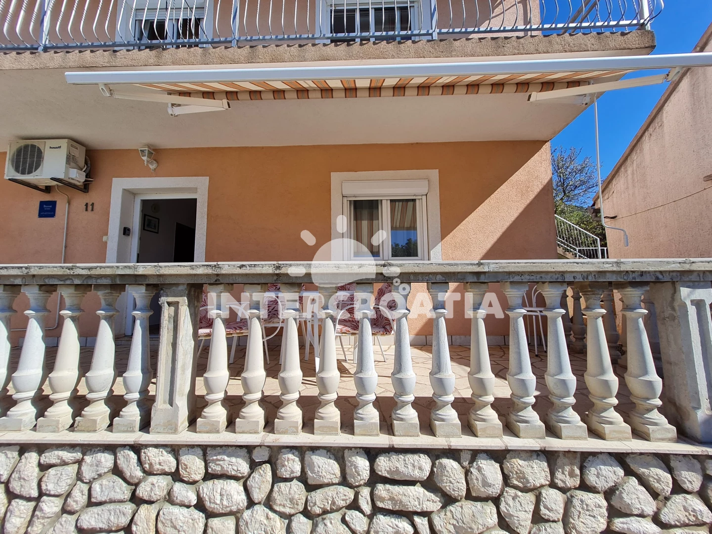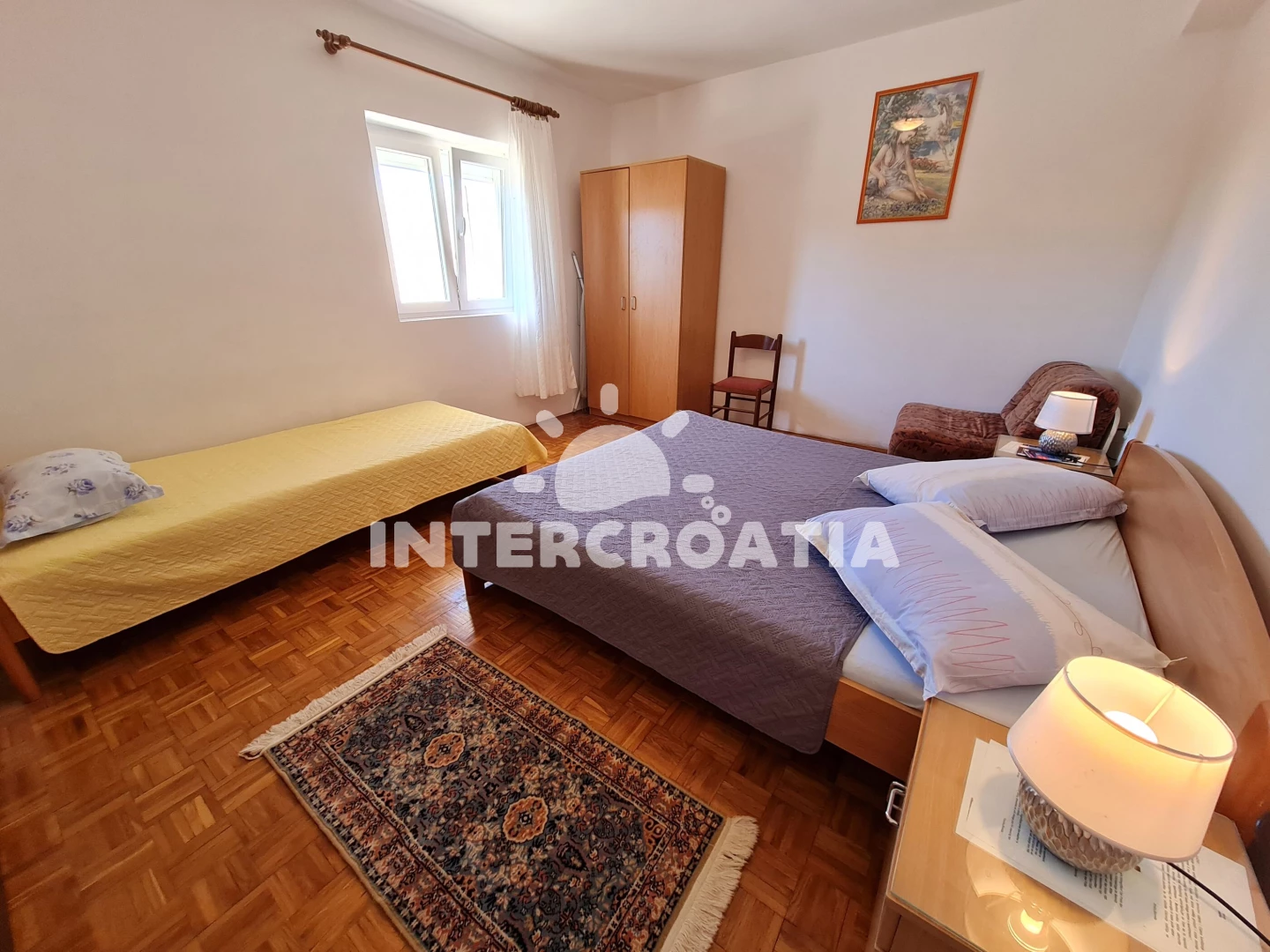 Apartmán se nachází 950 m od moře a pláže. Pláž je skalnatá, oblázková, větší kamení a betonové desky. U objektu je k dispozici společná zahrada s posezením a grilem.
