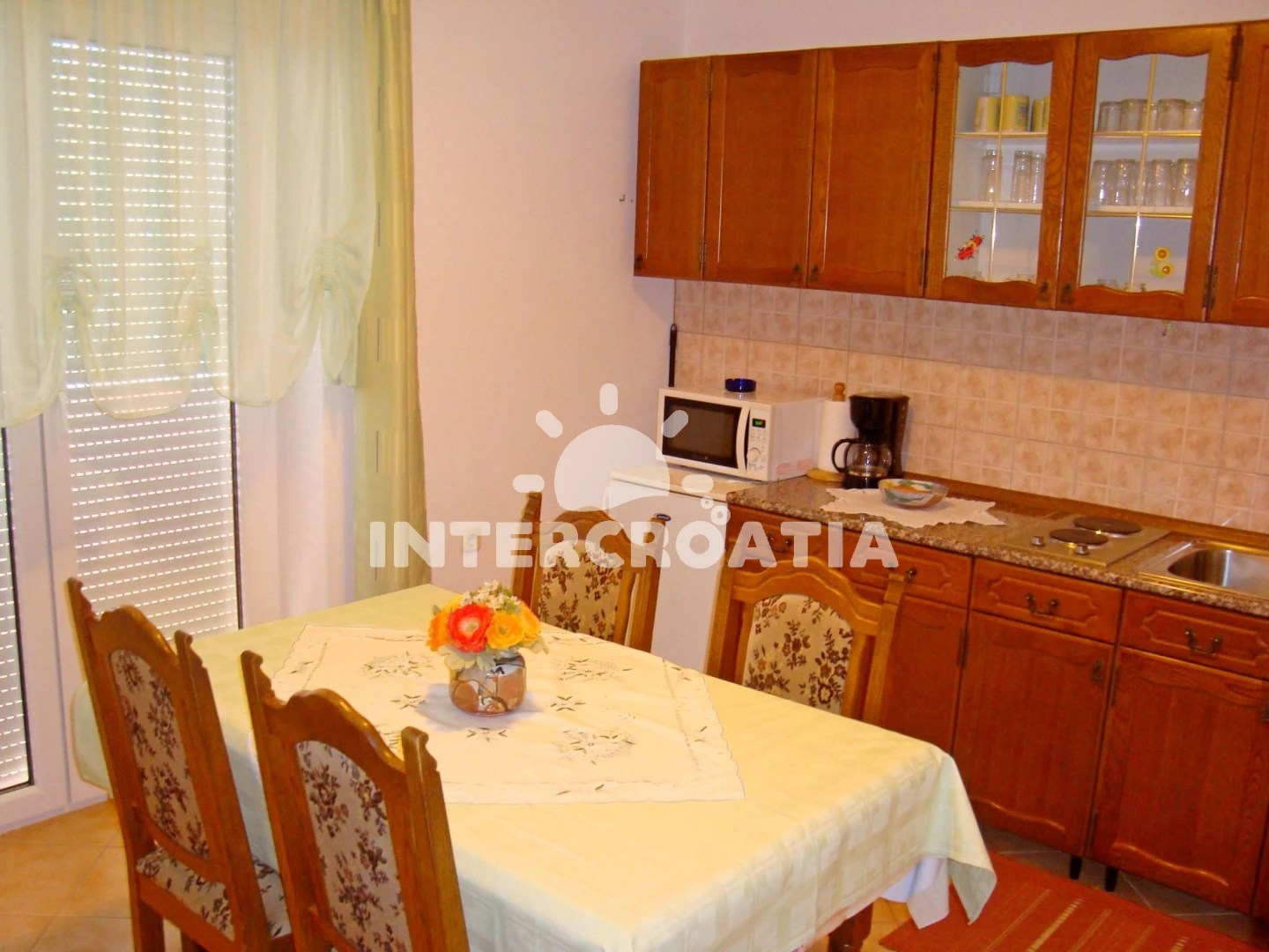 Vzdálenosti: Moře 800 m, pláž 900 m (oblázky), supermarket 250 m, bar 300 m, čerpací stanice 300 m, restaurace 800 m, centrum 1 km, diskotéka 1 km, banka 1 km, pošta 1 km, veřejná doprava 1 km, lékárna 1 km, ambulance 1 km, směnárna 1 km, muzeum 1 km, letiště (Rijeka) 65 km, trajekt (Rijeka) 70 km,