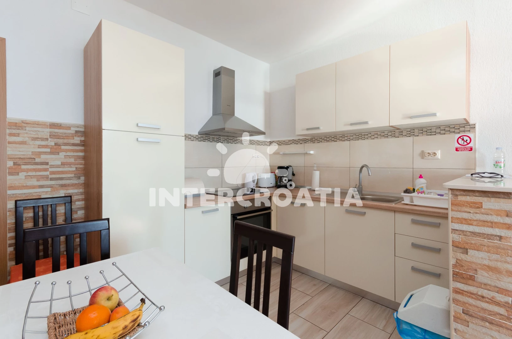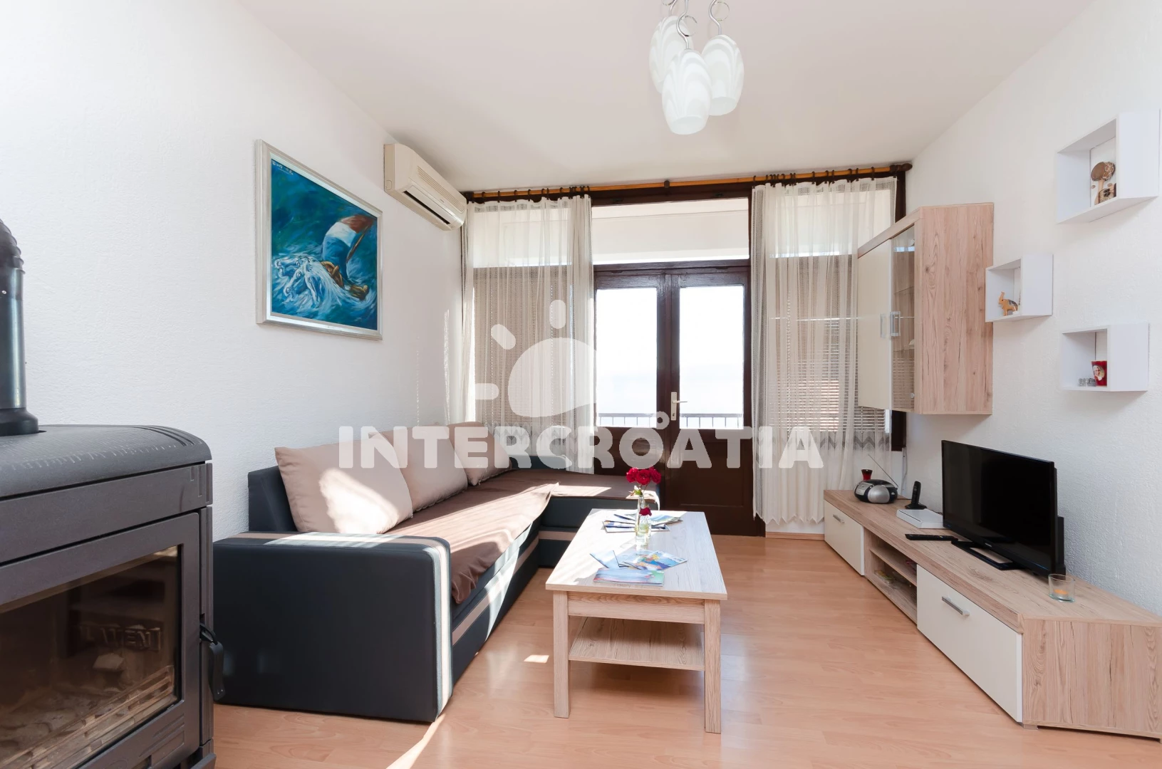 Vzdálenosti: Moře 30 m, pláž 50 m (oblázková a betonové desky), supermarket 50 m, lékárna 400 m, čerpací stanice 400 m, banka 500 m, pošta 500 m, směnárna 600 m, restaurace 600 m, centrum 700 m, veřejná doprava 700 m, ambulance 800 m, bar 800 m, muzeum 800 m, diskotéka 800 m, letiště (Rijeka) 75,0 km,