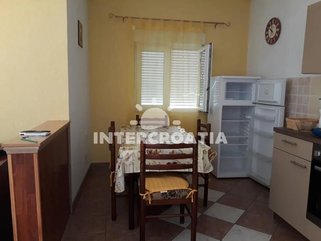 Apartmán se nachází 700 m od moře a pláže. Pláž je skalnatá, oblázková a větší kamení. Parkování je před domem.