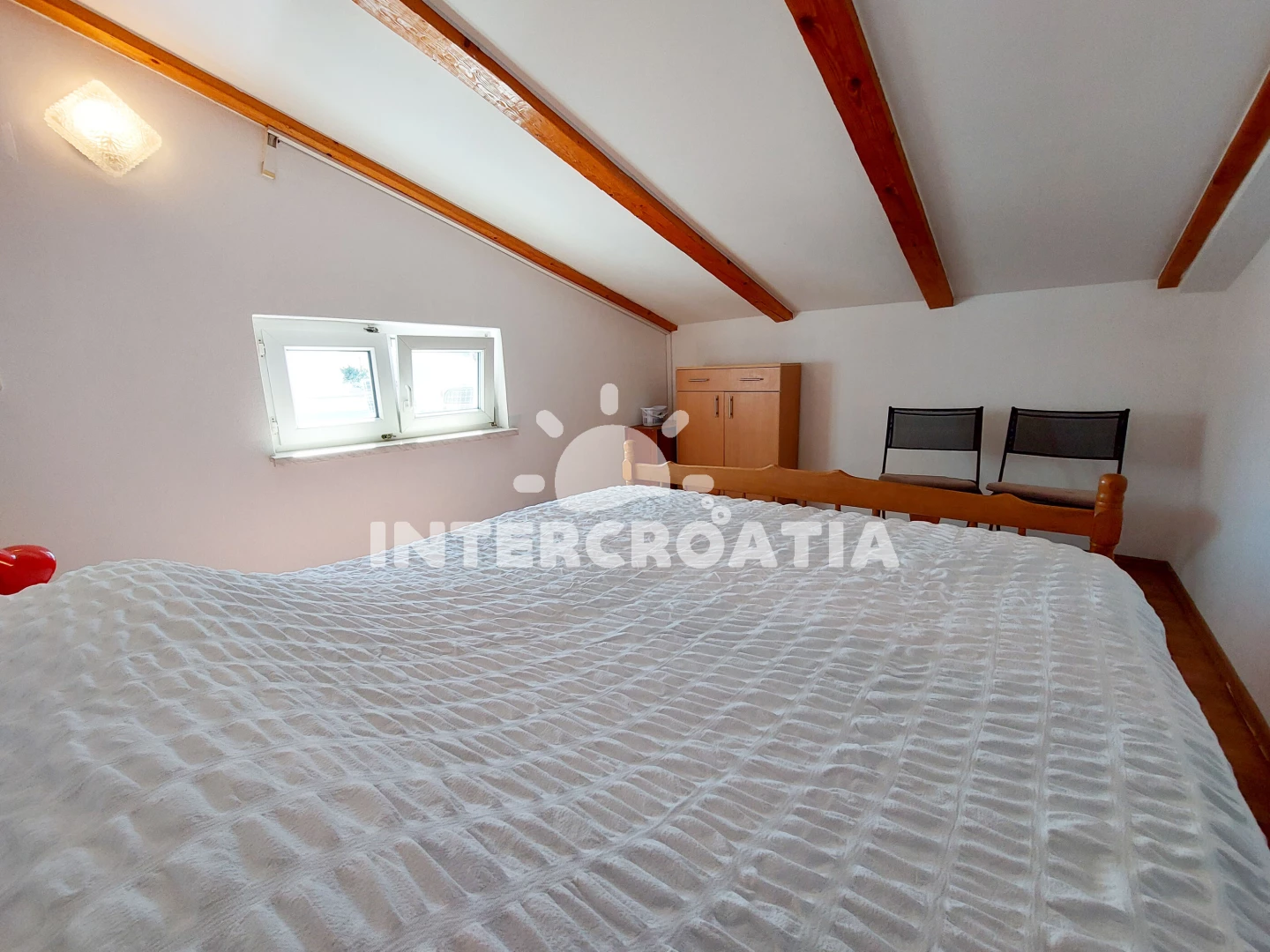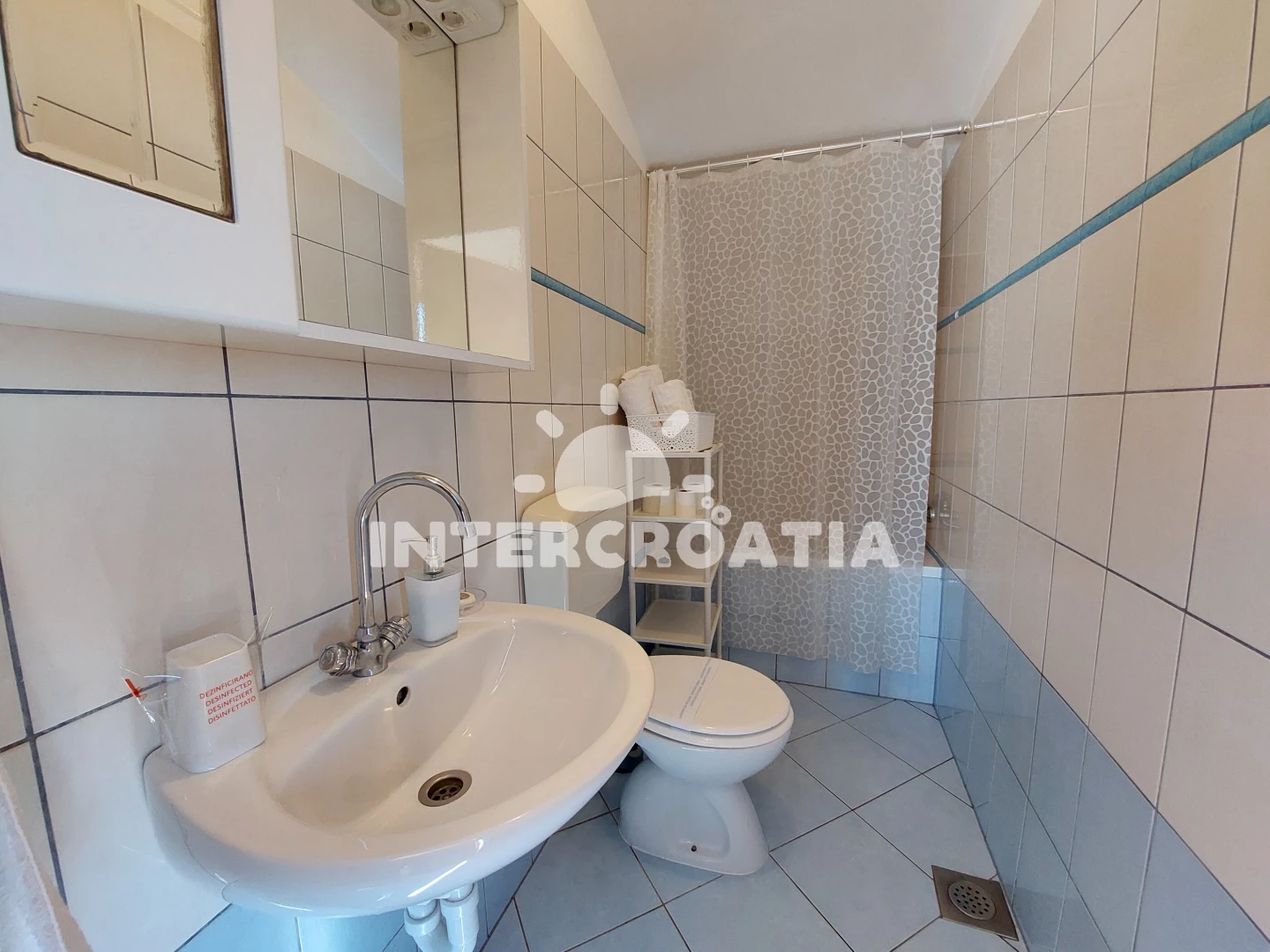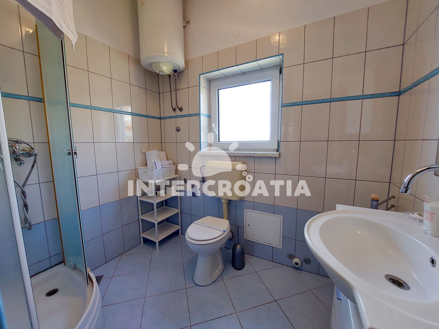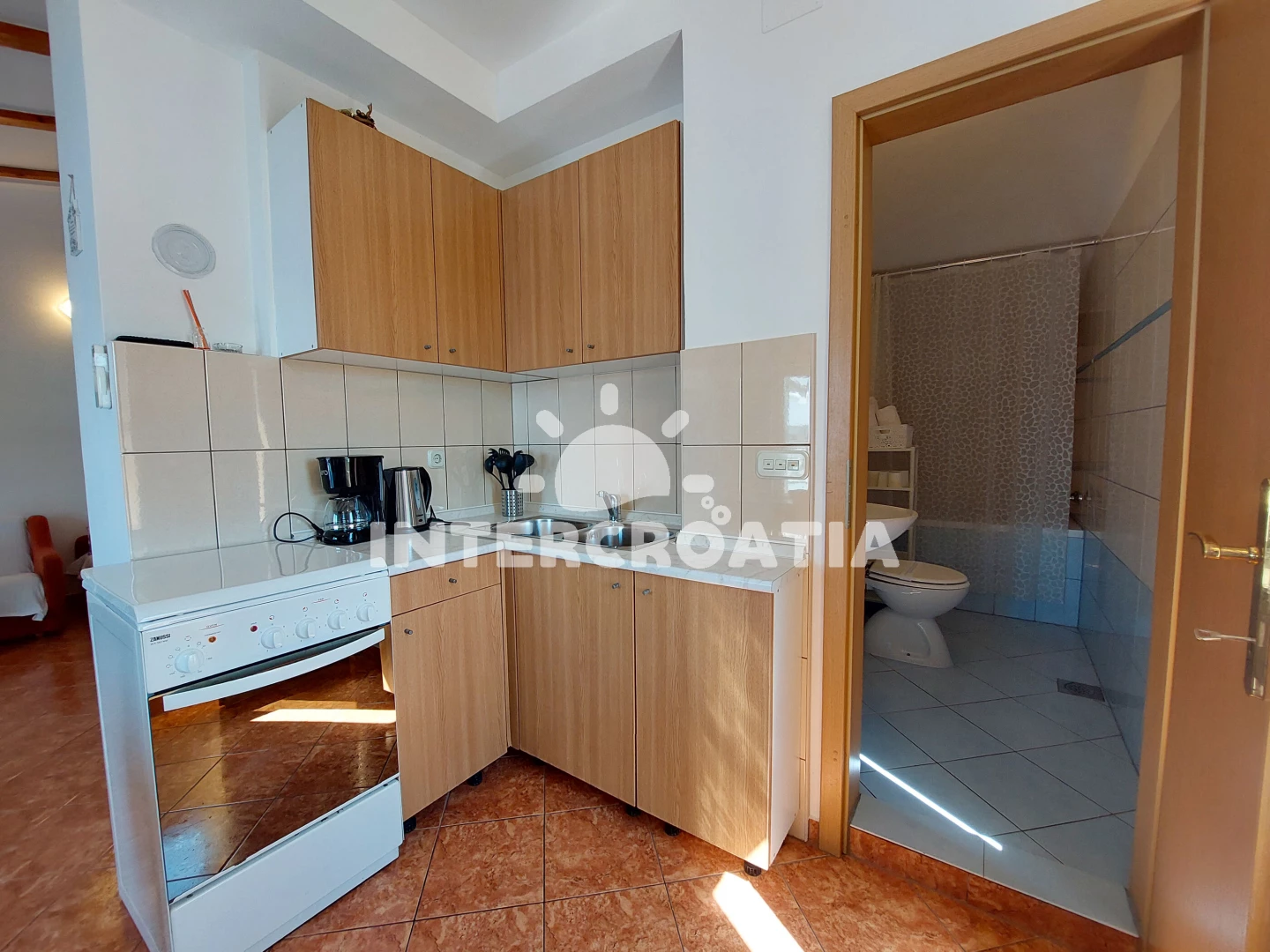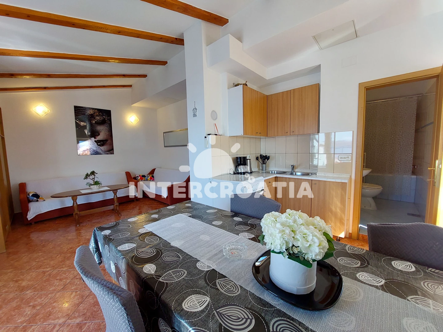 Apartmán se nachází 200 m od moře a pláže. Pláž je oblázková a betonové desky. U objektu je k dispozici společná zahrada s posezením a grilem. Parkování je před domem.