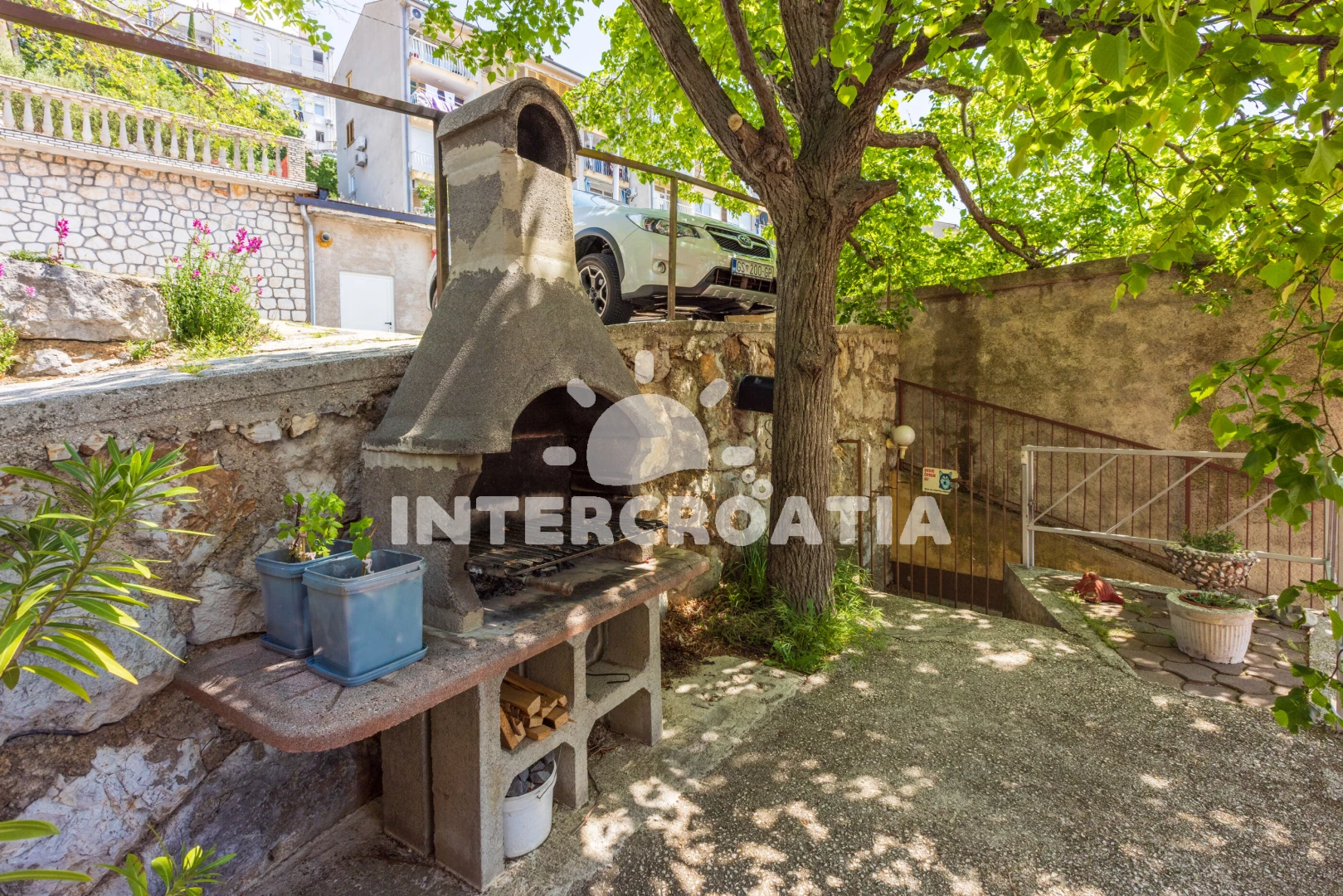 Apartmán se nachází 300 m od moře a pláže. Pláž je oblázková a betonové desky. U objektu je k dispozici společná zahrada s posezením a grilem. Parkování je před domem.