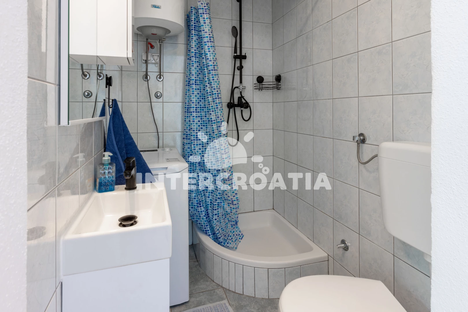 Vzdálenosti: Moře 200 m, pláž 300 m (oblázková a betonové desky), bar 150 m, čerpací stanice 300 m, restaurace 400 m, supermarket 400 m, lékárna 500 m, banka 500 m, směnárna 500 m, půjčovna motorových člunů 600 m, pošta 600 m, ambulance 700 m, centrum 800 m, muzeum 800 m, veřejná doprava 1 km, tenisové kurty 1,5 km, park Plitvice 32 km, trajekt (Jablanac) 45 km, letiště (Rijeka) 65 km,