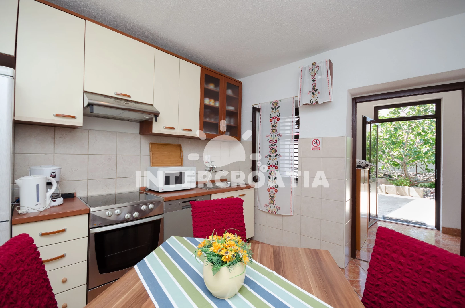 Byt je vybaven vším, co potřebujete pro dovolenou s vlastním stravováním. Ani v horkých dnech se byt nepřehříval a klimatizaci jsme museli používat jen zřídka. Na terase si posedíte v krytém dvoře s fíkovníkem pro samoobsluhu. Parkovat se dalo přímo před domem (ve svahu) nebo v přilehlých bočních uličkách.