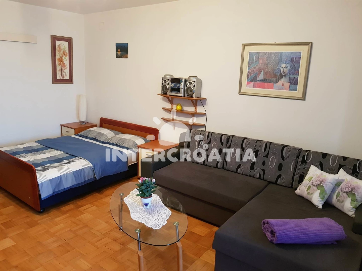 Apartmán (50 m2) typu studio s balkonem, a výhledem na moře. Nachází se v přízemí objektu. Kuchyňská linka je vybavena kávovarem, troubou, toustovačem, myčkou na nádobí, mikrovlnnou troubou,…