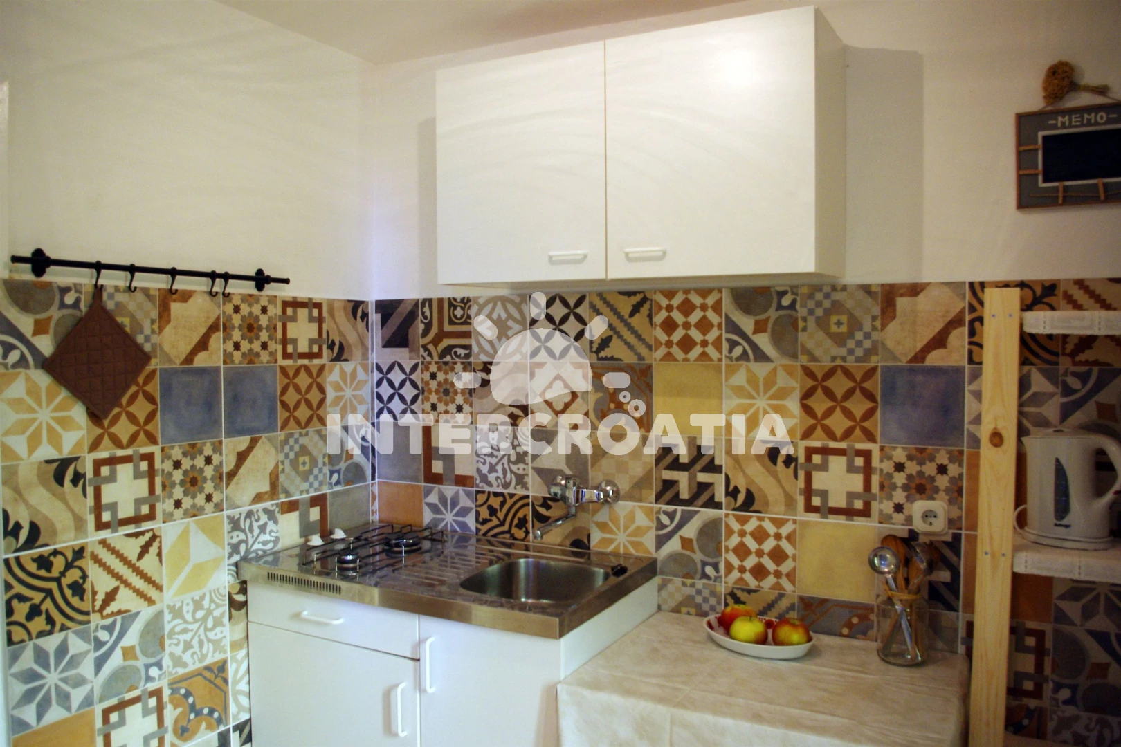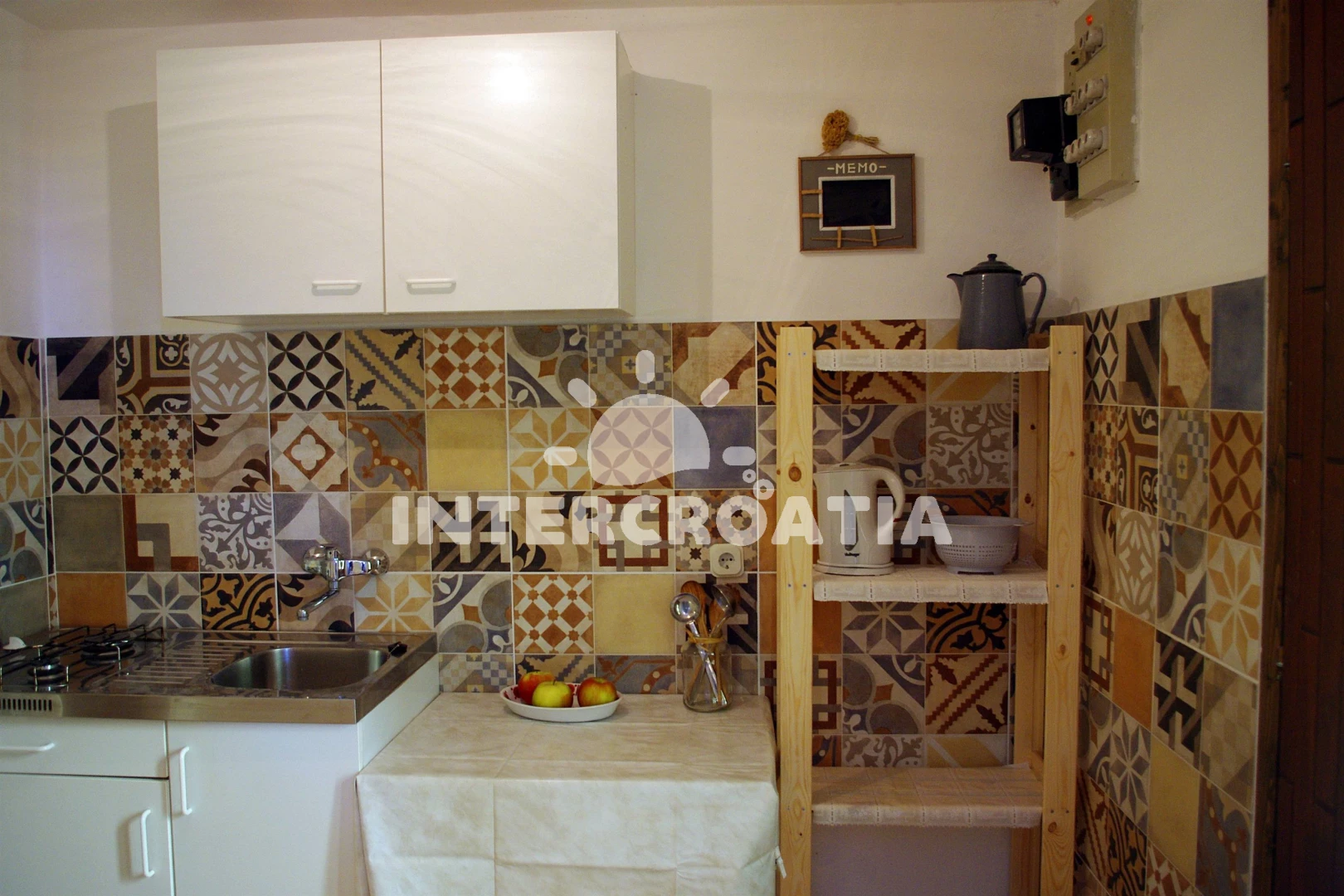 Apartmán se nachází 500 m od moře a pláže. Pláž je oblázková a betonové desky. U objektu je k dispozici společná zahrada s posezením a grilem.