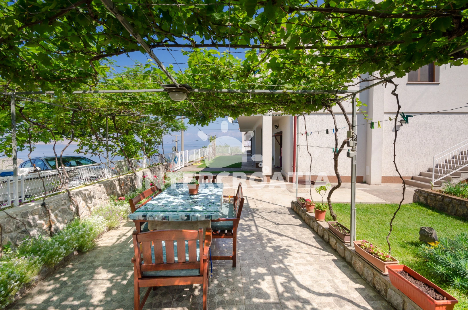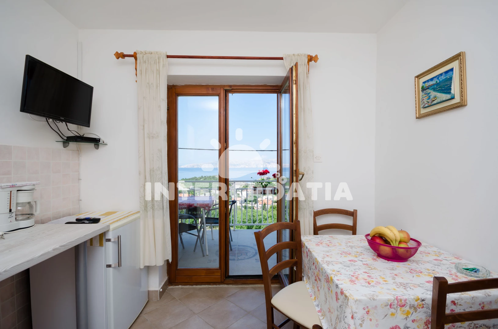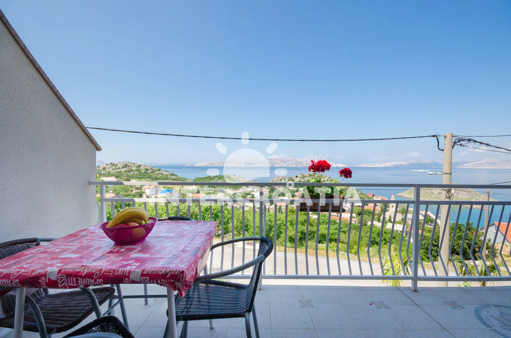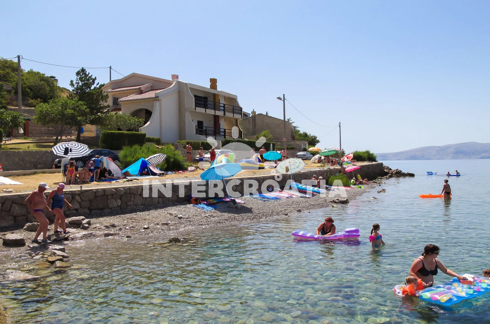 Vzdálenosti: kotviště pro čluny 0 m, Moře 250 m, pláž 350 m (písčitá a betonové desky), veřejná doprava 300 m, centrum 400 m, supermarket 400 m, půjčovna motorových člunů 400 m, ambulance 400 m, směnárna 400 m, pošta 400 m, bar 400 m, restaurace 400 m, potápění 2 km, tenisové kurty 2 km, diskotéka 9 km, banka 9 km, muzeum 9 km, čerpací stanice 9 km, lékárna 9 km, marina 23 km, trajekt (Prizna) 40 km, letiště (Rijeka) 90 km, park Plitvice 108 km,