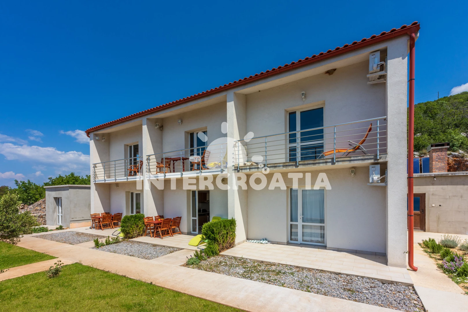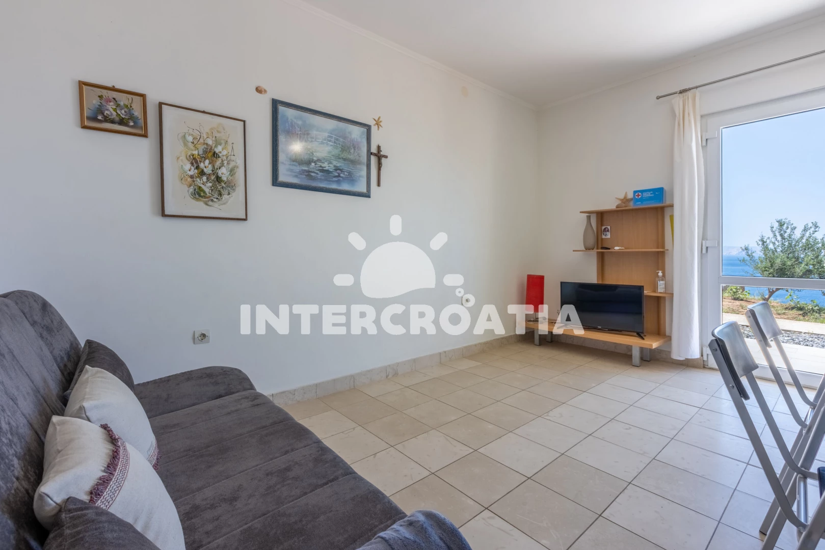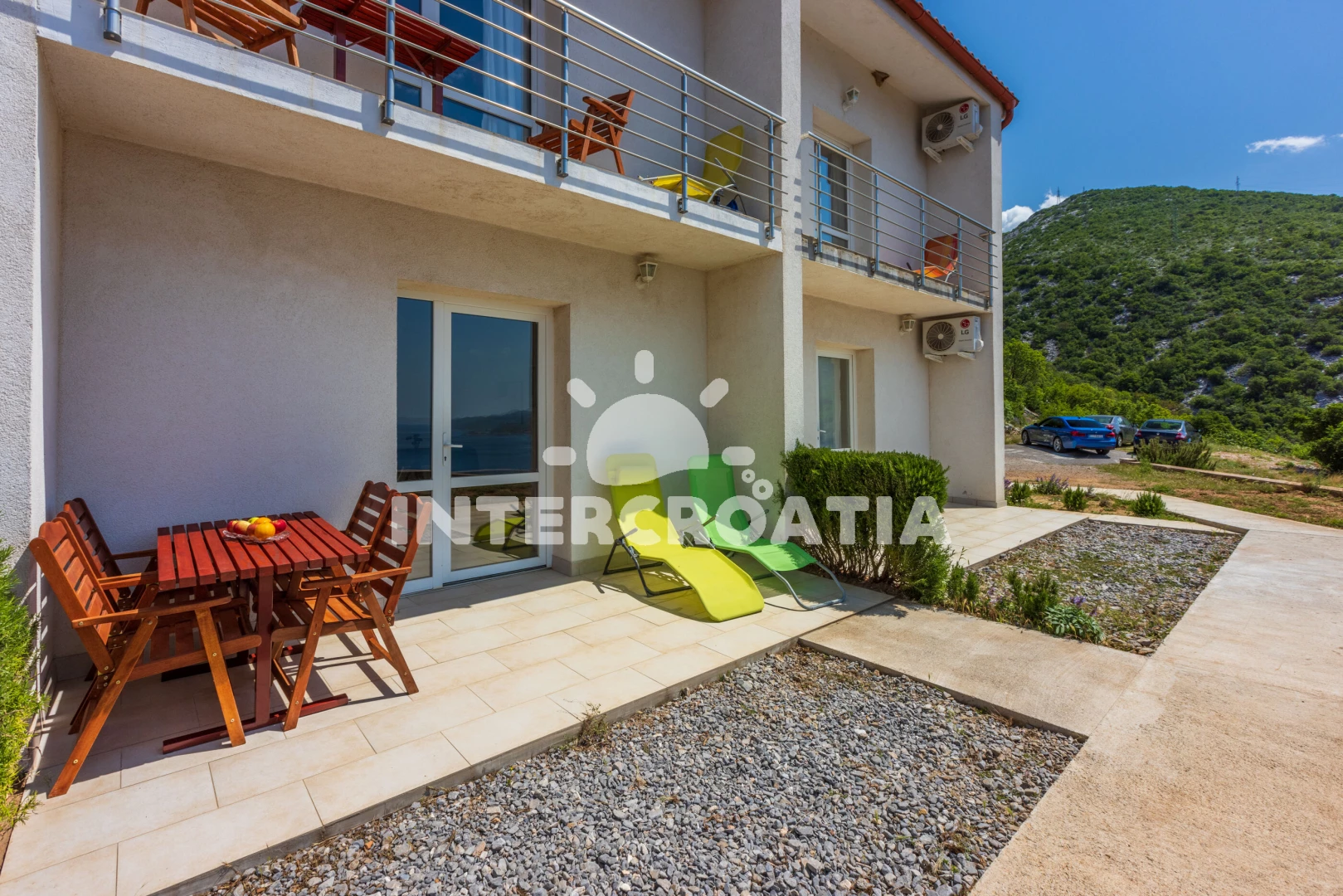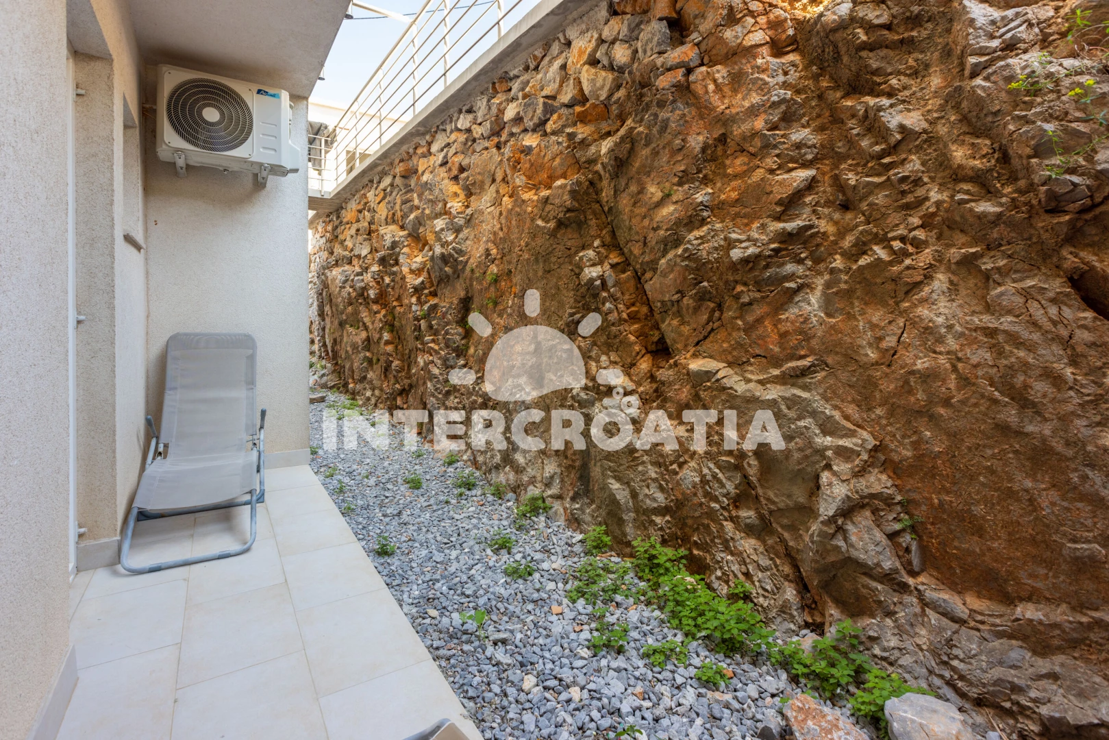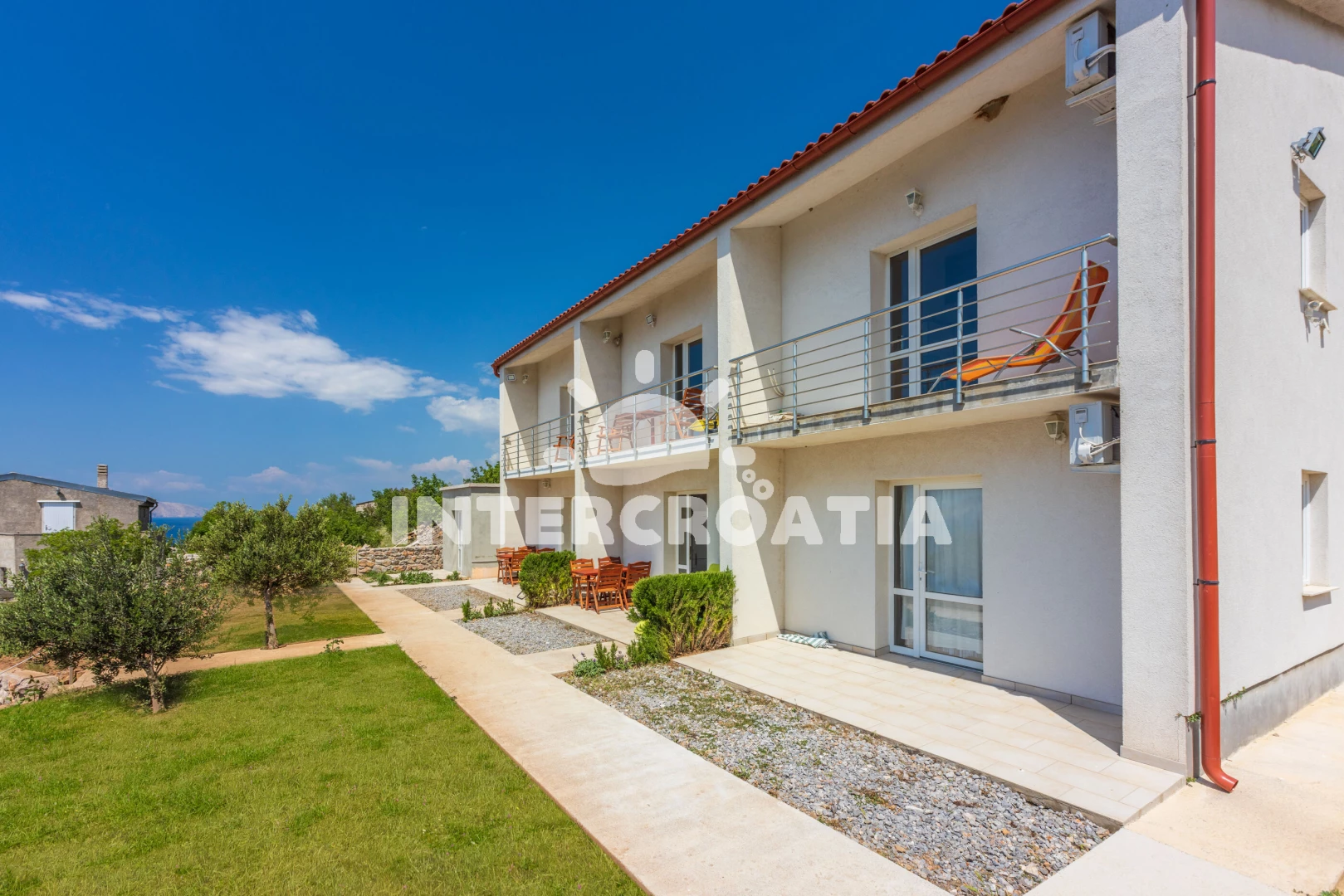 Apartmán se nachází 500 m od moře a pláže. Pláž je skalnatá, oblázková a větší kamení. U objektu je k dispozici společná zahrada s posezením a grilem. Parkování je před domem.