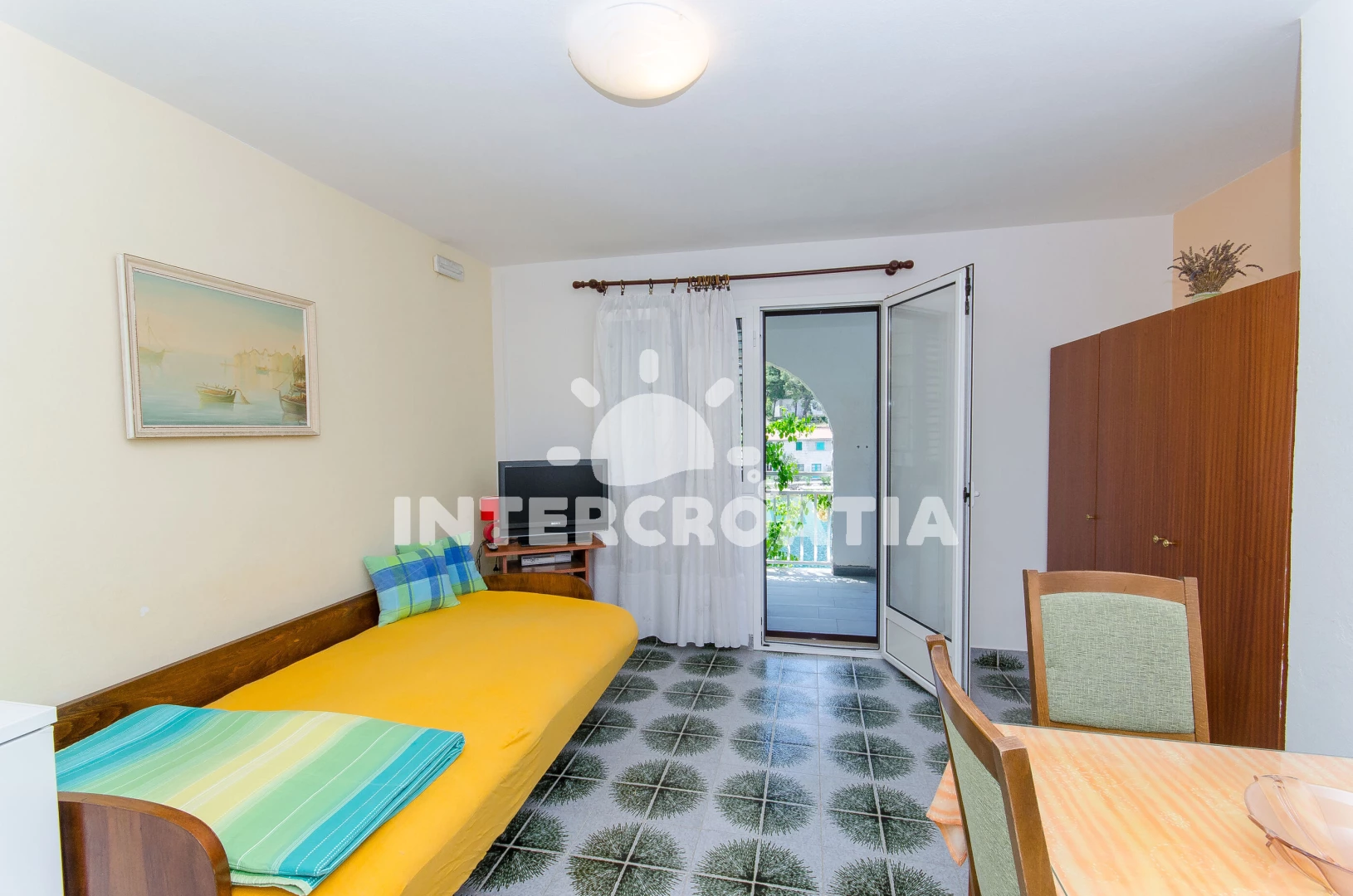 Vzdálenosti: Moře 10 m, pláž 10 m (oblázková a betonové desky), půjčovna motorových člunů 10 m, bar 50 m, centrum 50 m, restaurace 50 m, půjčovna kol 50 m, supermarket 100 m, veřejná doprava 1 km, čerpací stanice 7 km, směnárna 7 km, potápění 7 km, lékárna 7 km, tenisové kurty 7 km, muzeum 7 km, pošta 7 km, trajekt (Supetar) 12 km, ambulance 12 km, banka 12 km, diskotéka 12 km, letiště (Bol (otok Brač)) 35 km,