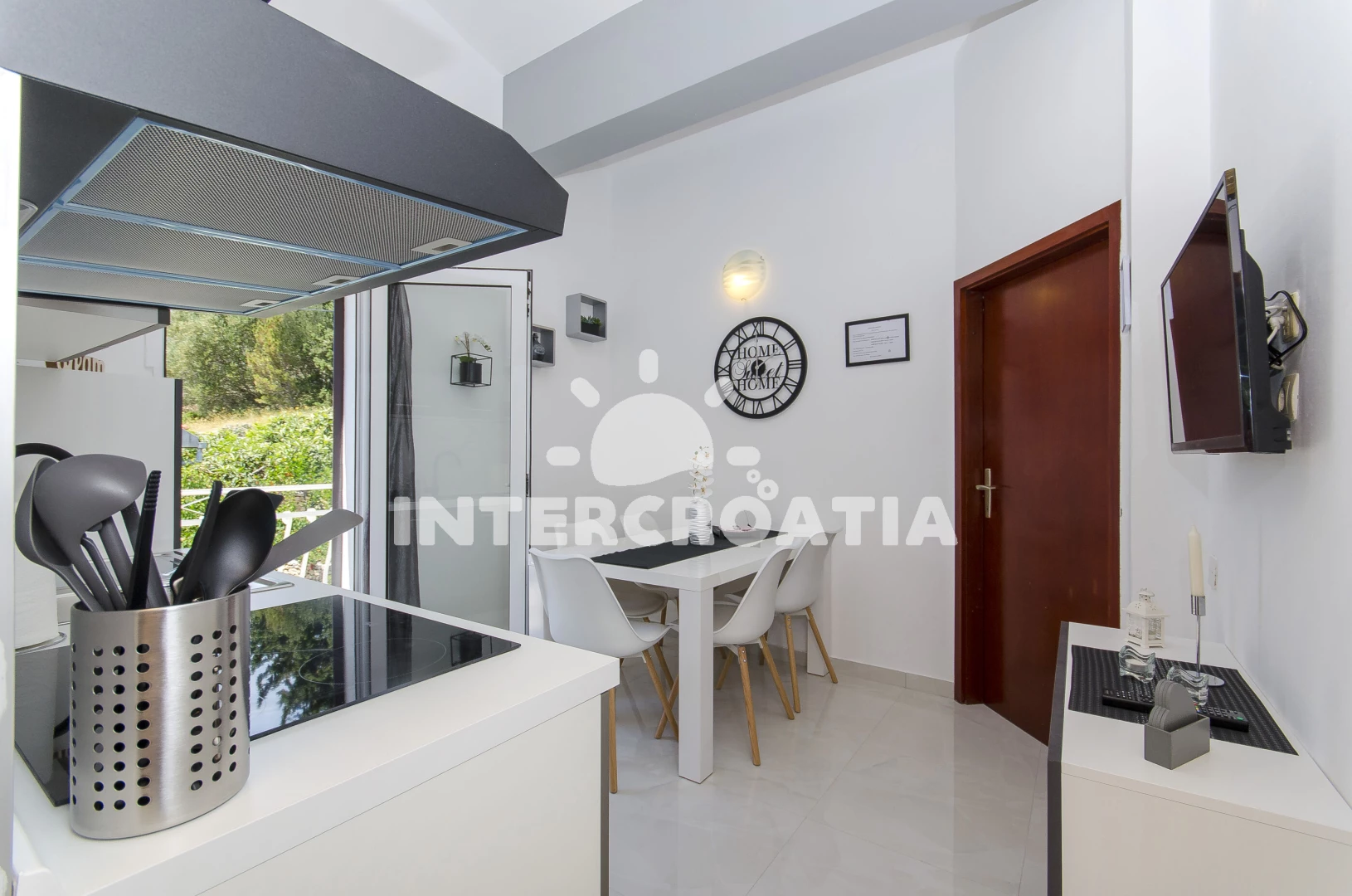 Vzdálenosti: Moře 10 m, pláž 10 m (oblázková a betonové desky), půjčovna motorových člunů 10 m, bar 50 m, centrum 50 m, restaurace 50 m, půjčovna kol 50 m, supermarket 100 m, veřejná doprava 1 km, čerpací stanice 7 km, směnárna 7 km, potápění 7 km, lékárna 7 km, tenisové kurty 7 km, muzeum 7 km, pošta 7 km, trajekt (Supetar) 12 km, ambulance 12 km, banka 12 km, diskotéka 12 km, letiště (Bol (otok Brač)) 35 km,