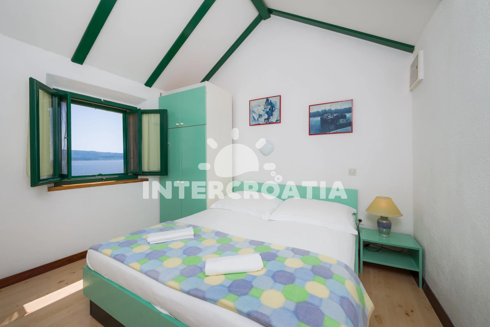 Apartmán (30 m2) s terasou, a výhledem na moře. Nachází se v podkroví objektu. Apartmán má 1 ložnici a je vhodný pro až 2 osoby. Kuchyňská linka je vybavena varnou deskou, nádobím, lednicí. K dispozici televize. Ložnice s dvoulůžkem. Koupelna se sprchovým koutem, umyvadlem, fénem a WC.