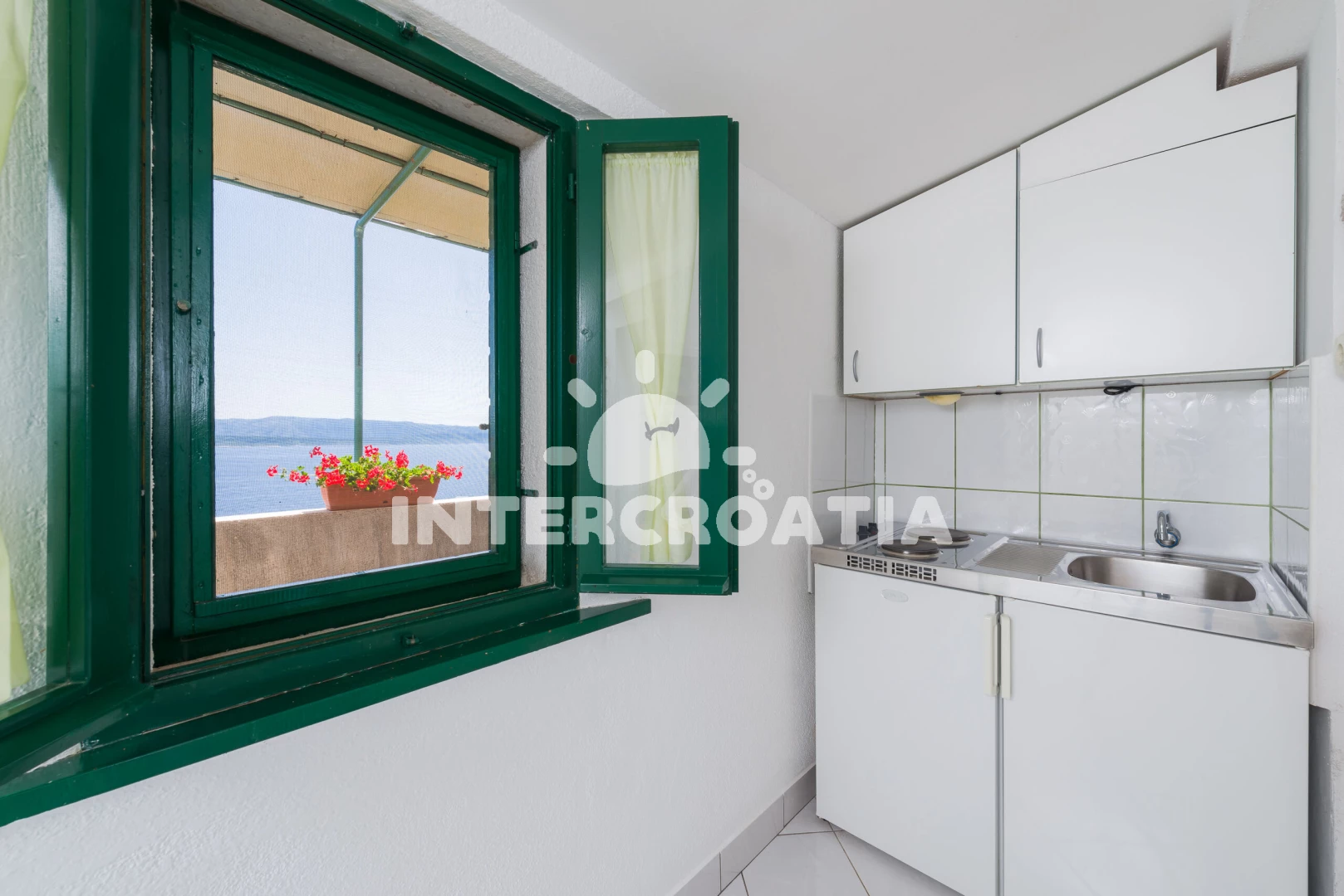 Apartmán (30 m2) s terasou, a výhledem na moře. Nachází se v podkroví objektu. Apartmán má 1 ložnici a je vhodný pro až 2 osoby. Kuchyňská linka je vybavena varnou deskou, nádobím, lednicí. K…