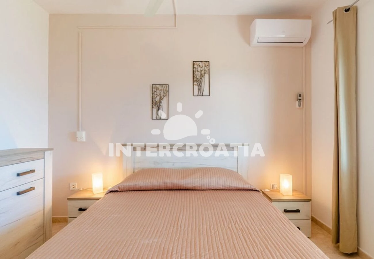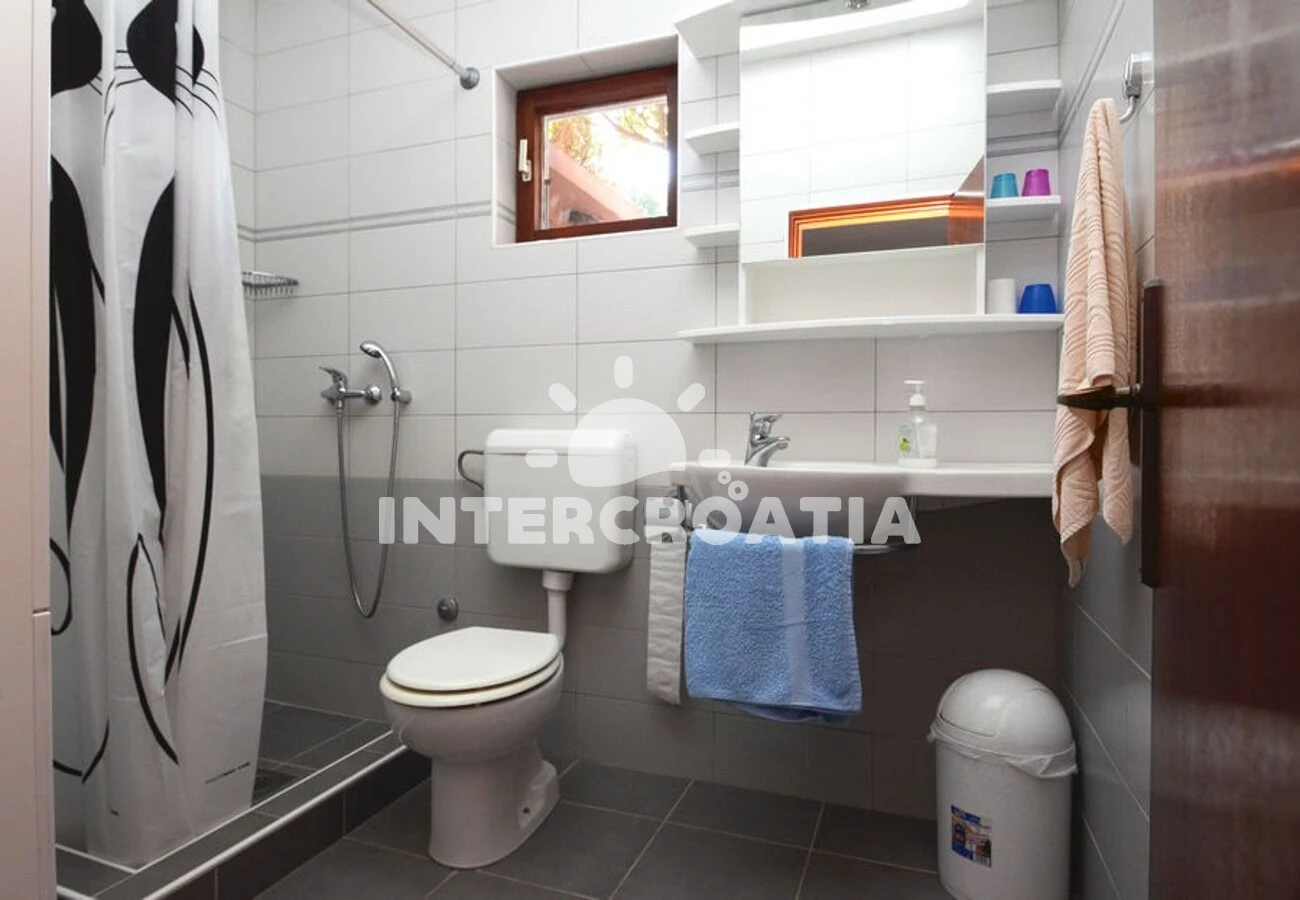 Vzdálenosti: Moře 200 m, pláž 200 m (skály), restaurace 30 m, supermarket 150 m, centrum 200 m, ambulance 300 m, veřejná doprava 700 m, trajekt 35 km, letiště 80 km, park Plitvice 135 km,