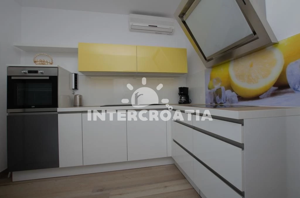 Apartmán (65 m2) s výhledem na moře. Apartmán má 2 ložnice a je vhodný pro až 4 osoby. Kuchyňská linka je vybavena varnou deskou, troubou, myčkou na nádobí, rychlovarnou konvicí, nádobím, lednicí,…