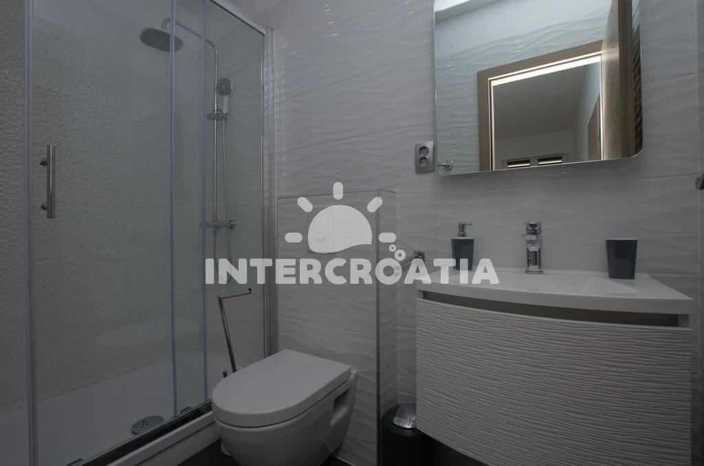 Apartmán (65 m2) s výhledem na moře. Apartmán má 2 ložnice a je vhodný pro až 4 osoby. Kuchyňská linka je vybavena varnou deskou, troubou, myčkou na nádobí, rychlovarnou konvicí, nádobím, lednicí, mrazákem. V obývací místnosti je rozložitelná pohovka (extra lůžko pro osoby). K dispozici televize se satelitním programem, žehlička. První ložnice s dvoulůžkem. Druhá ložnice s dvoulůžkem. První koupelna se sprchovým koutem, umyvadlem, WC. Druhá koupelna se sprchovým koutem, umyvadlem, WC.