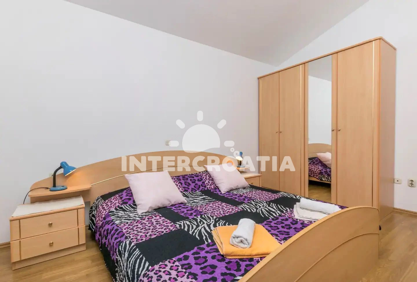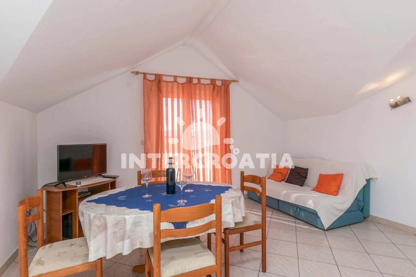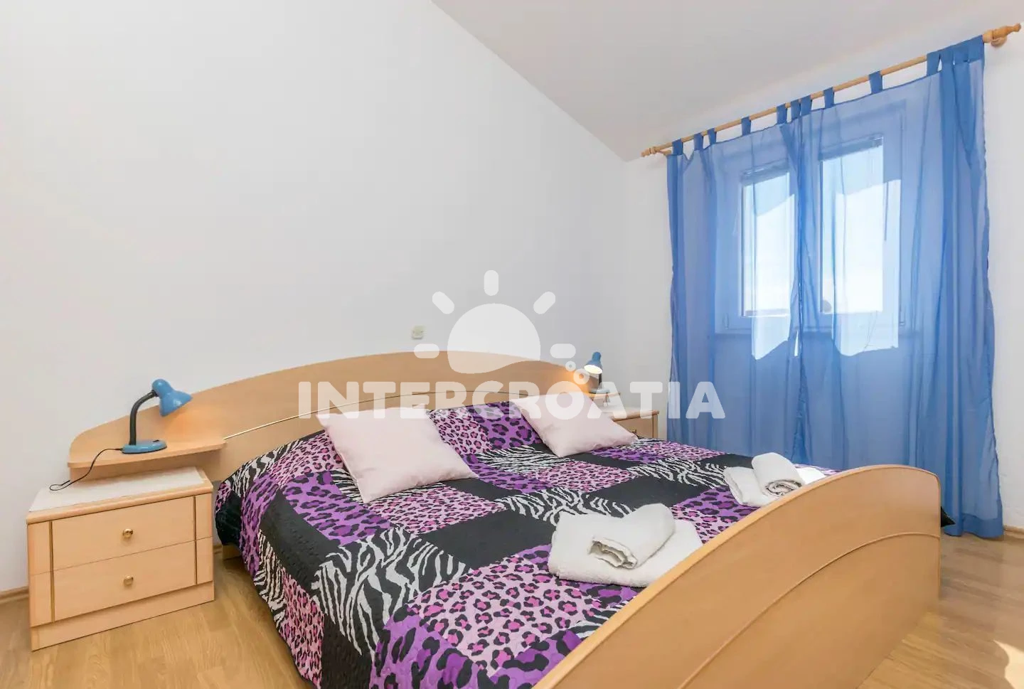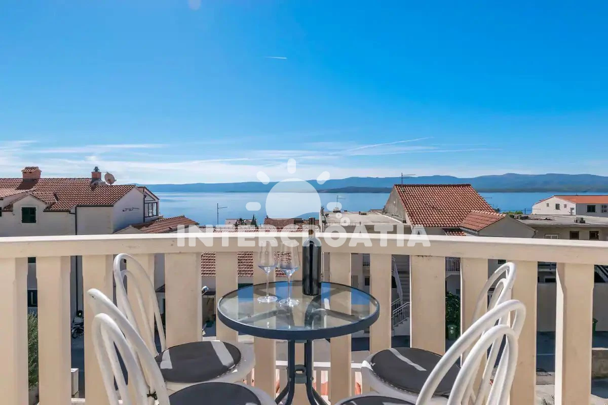 Apartmán (70 m2) s balkonem, a výhledem na moře. Nachází se v podkroví objektu. Apartmán má 2 ložnice a je vhodný pro až 4 osoby. Kuchyňská linka je vybavena varnou deskou, troubou, kávovarem,…