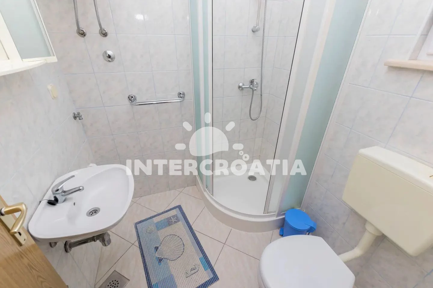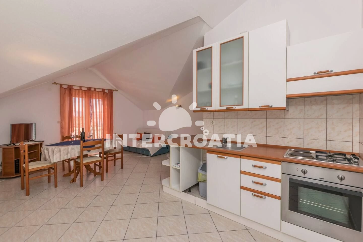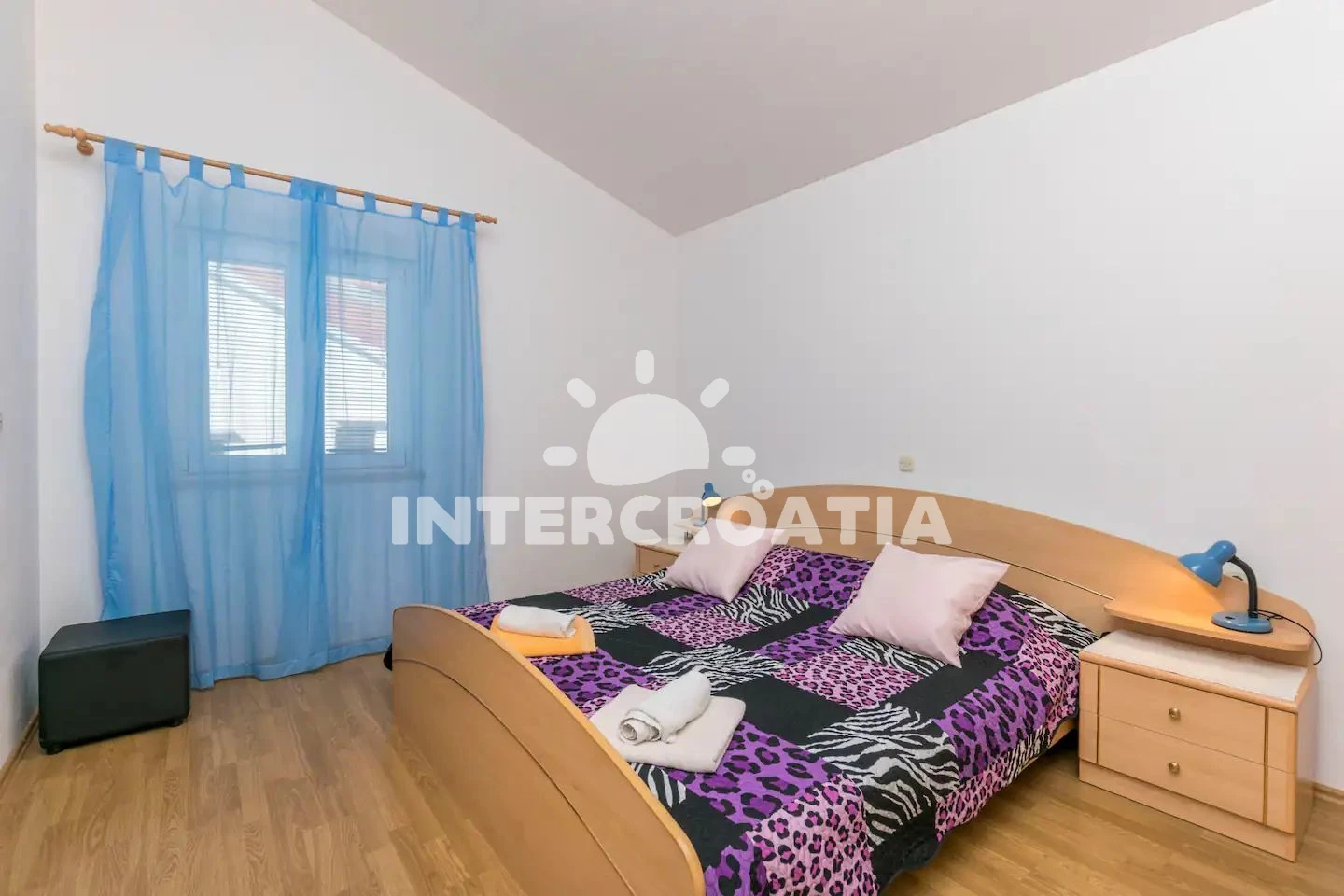 Apartmán (70 m2) s balkonem, a výhledem na moře. Nachází se v podkroví objektu. Apartmán má 2 ložnice a je vhodný pro až 4 osoby. Kuchyňská linka je vybavena varnou deskou, troubou, kávovarem,…