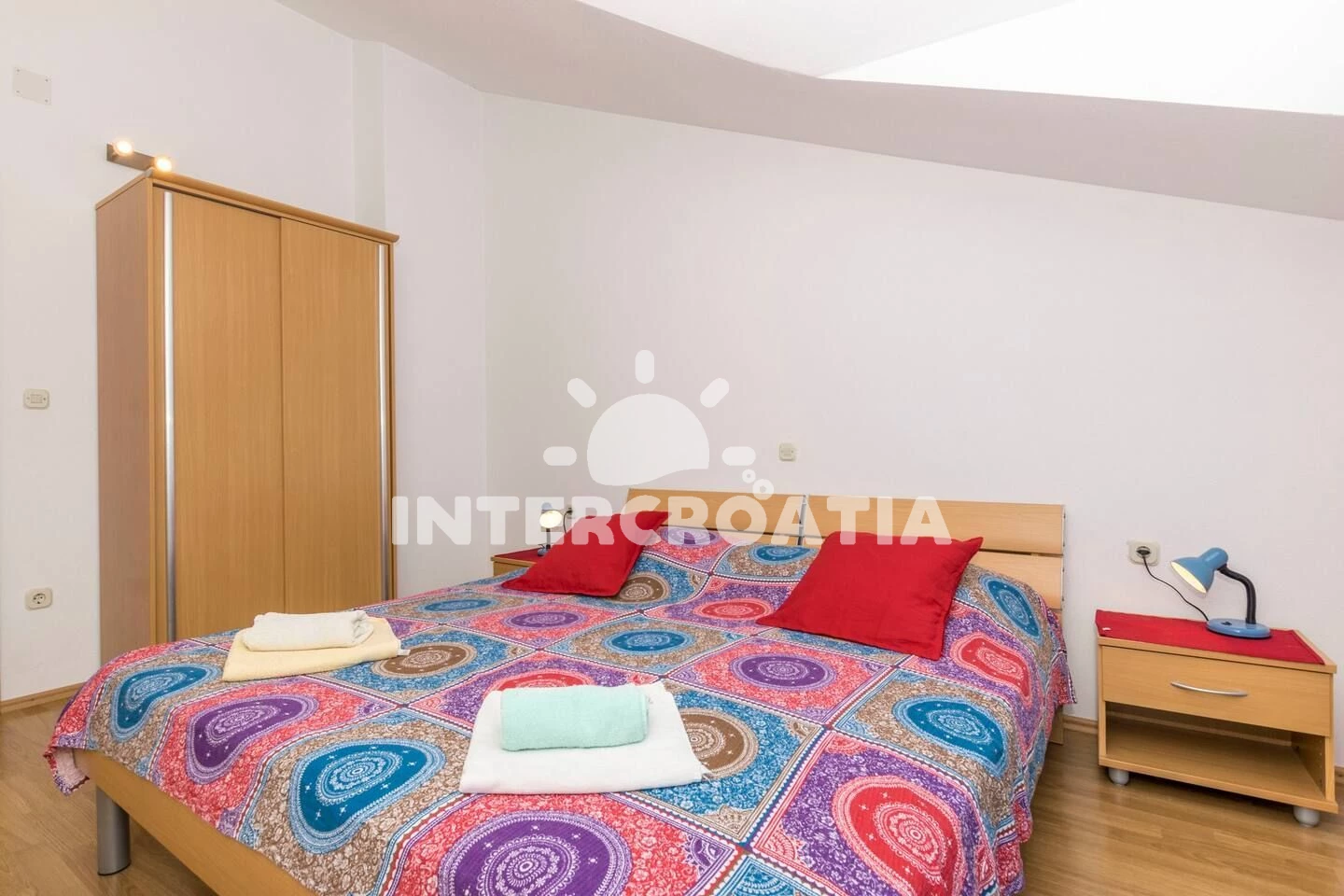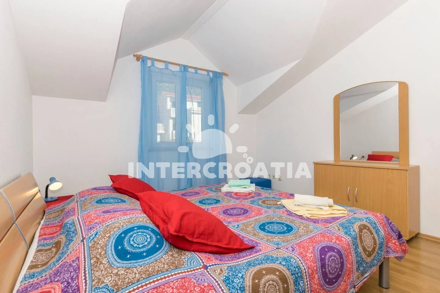 Apartmán (68 m2) s balkonem, a výhledem na moře. Nachází se v podkroví objektu. Apartmán má 2 ložnice a je vhodný pro až 4 osoby. Kuchyňská linka je vybavena varnou deskou, troubou, kávovarem,…