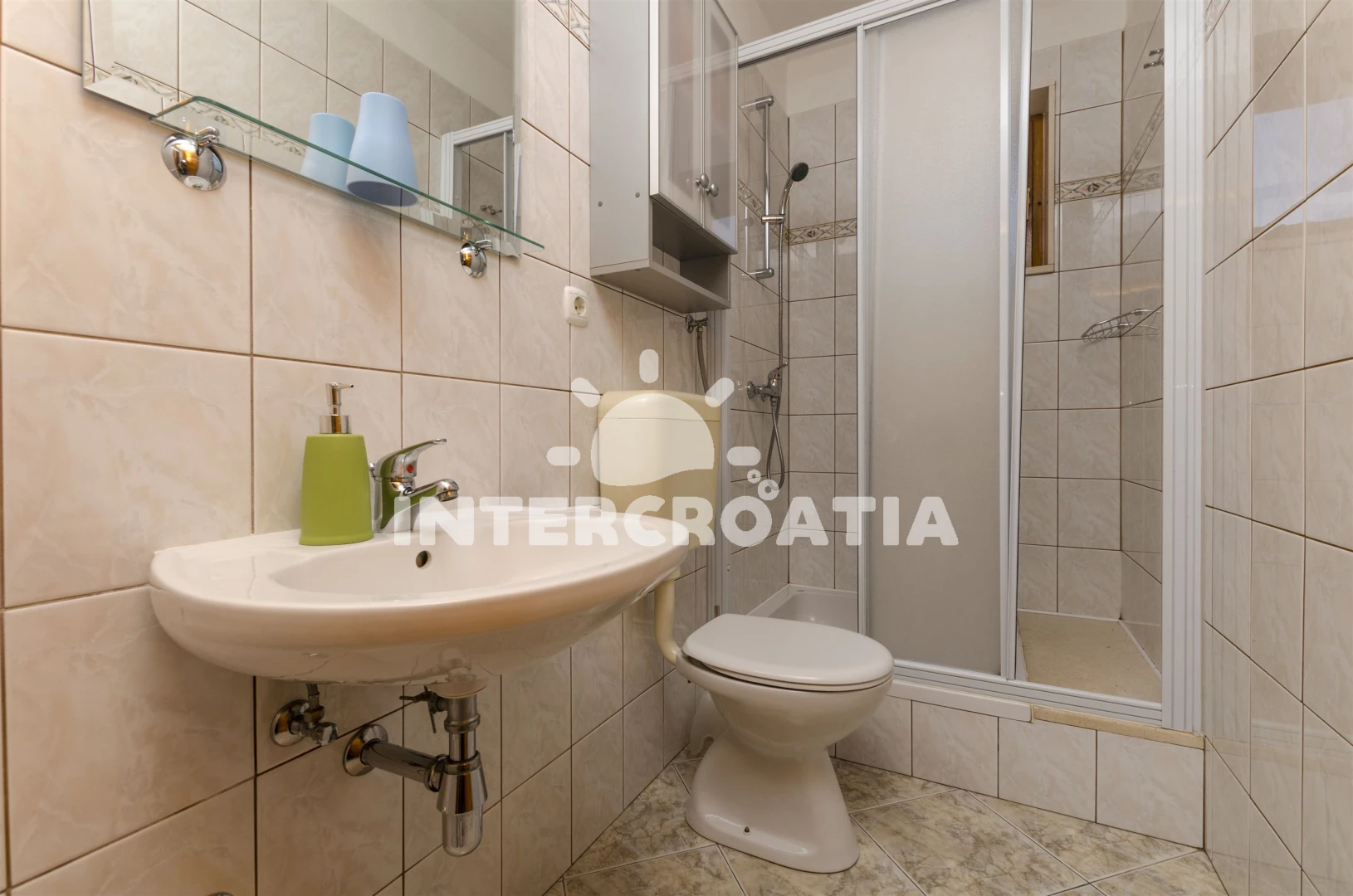 Apartmán se nachází 150 m od moře a pláže. Pláž je písčitá, skalnatá, oblázková, větší kamení a betonové desky. Apartmán disponuje bazénem s lehátky pro ubytované hosty. U objektu je k dispozici společná zahrada s posezením a grilem. Parkování je před domem.