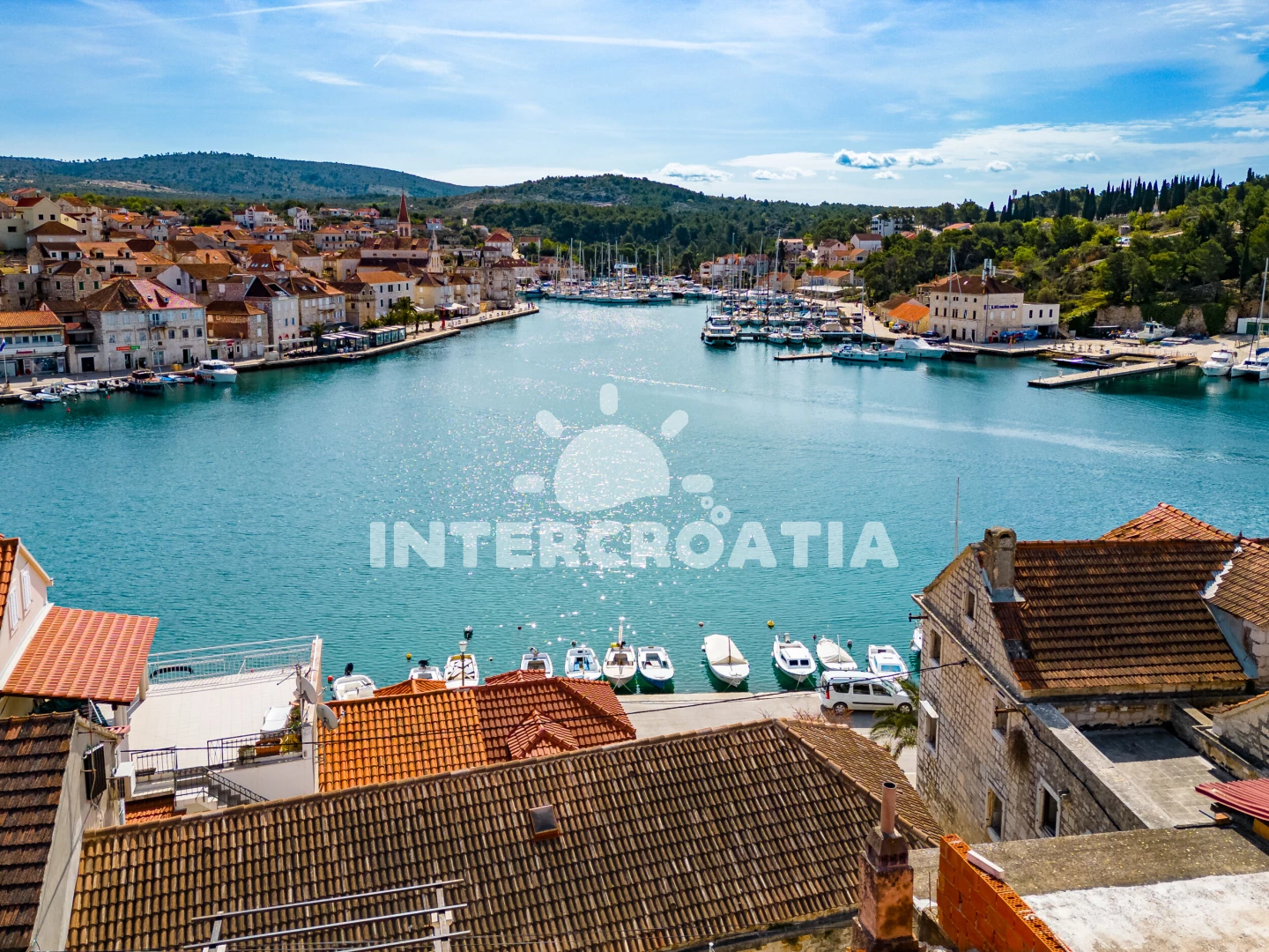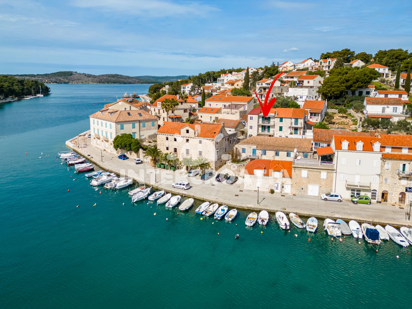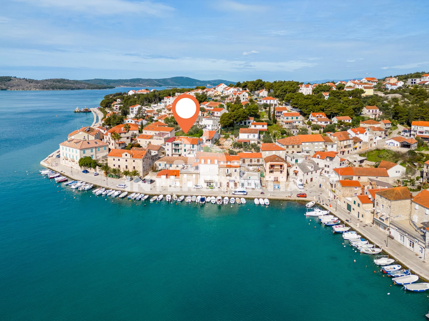 Vzdálenosti: Moře 10 m, pláž 1,2 km (oblázková a betonové desky), centrum 10 m, lékárna 50 m, bar 100 m, marina 100 m, směnárna 200 m, pošta 200 m, supermarket 200 m, restaurace 200 m, ambulance 20 km, trajekt (Supetar) 20 km, čerpací stanice 20 km, banka 20 km, letiště (Bol (otok Brač)) 33 km,