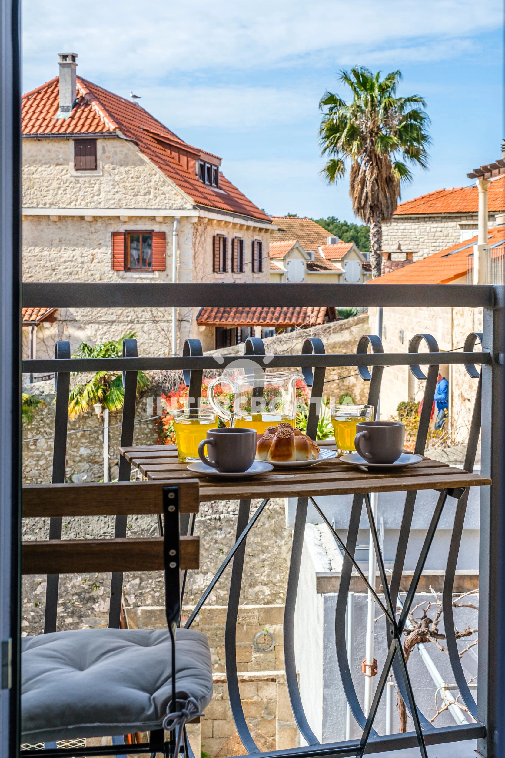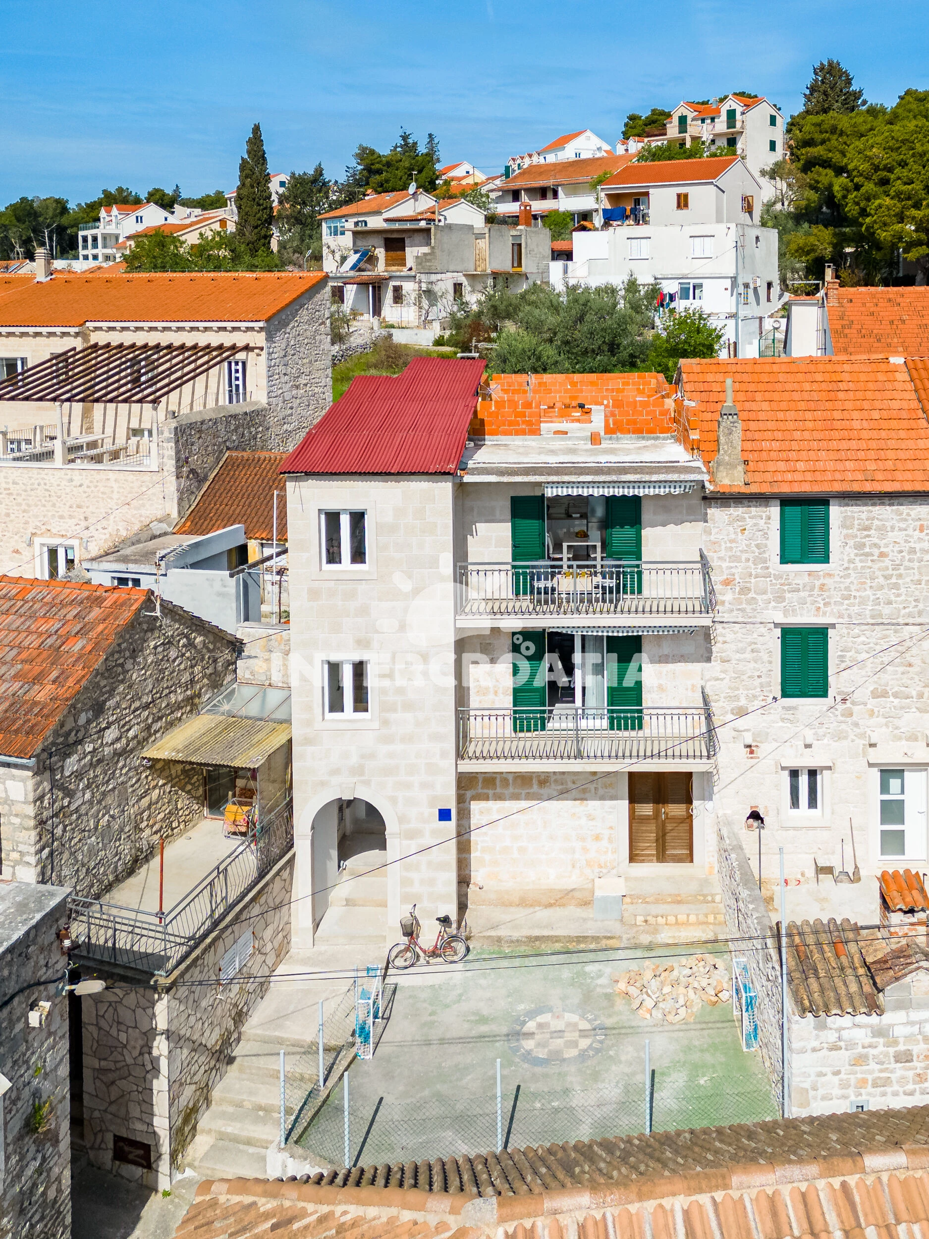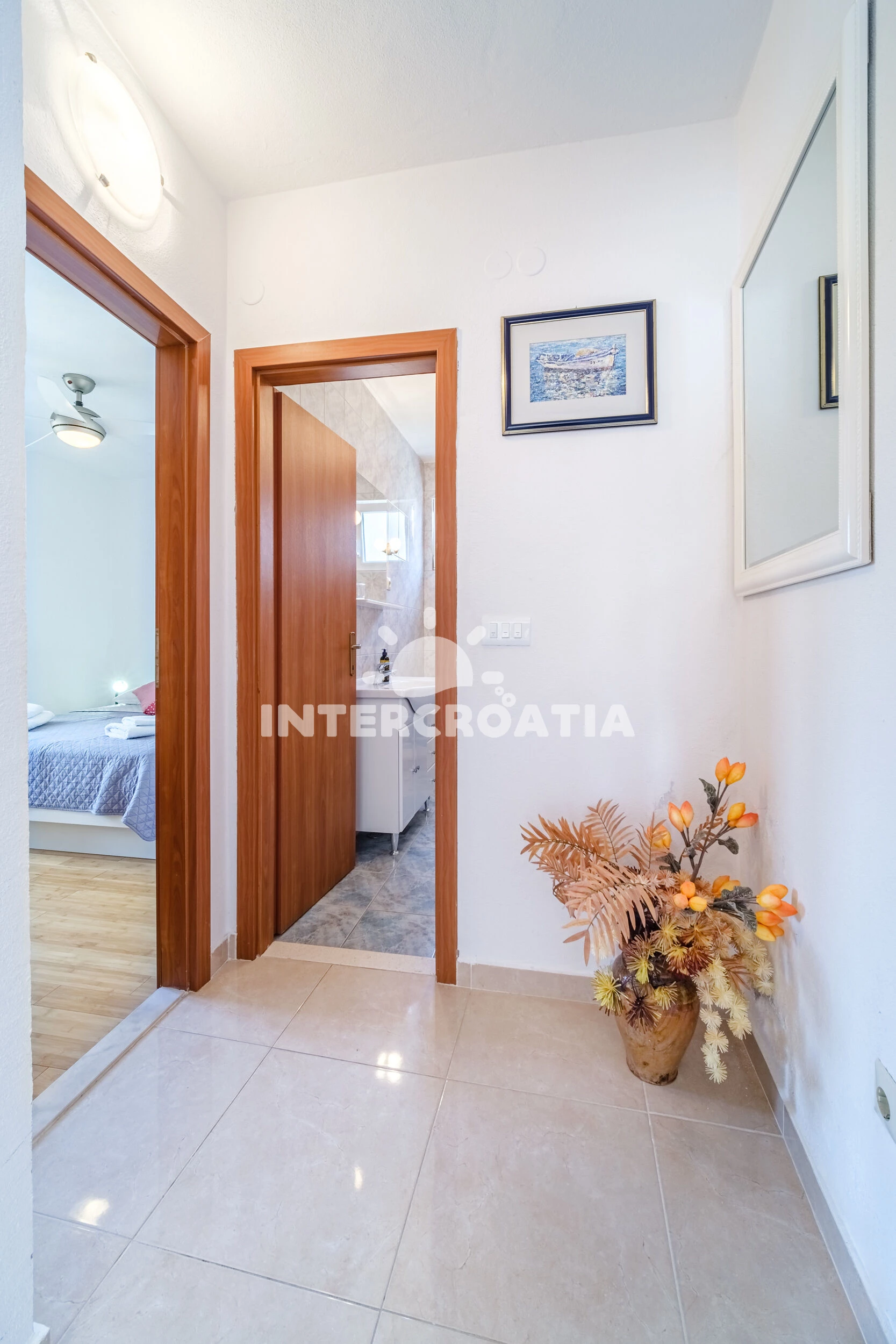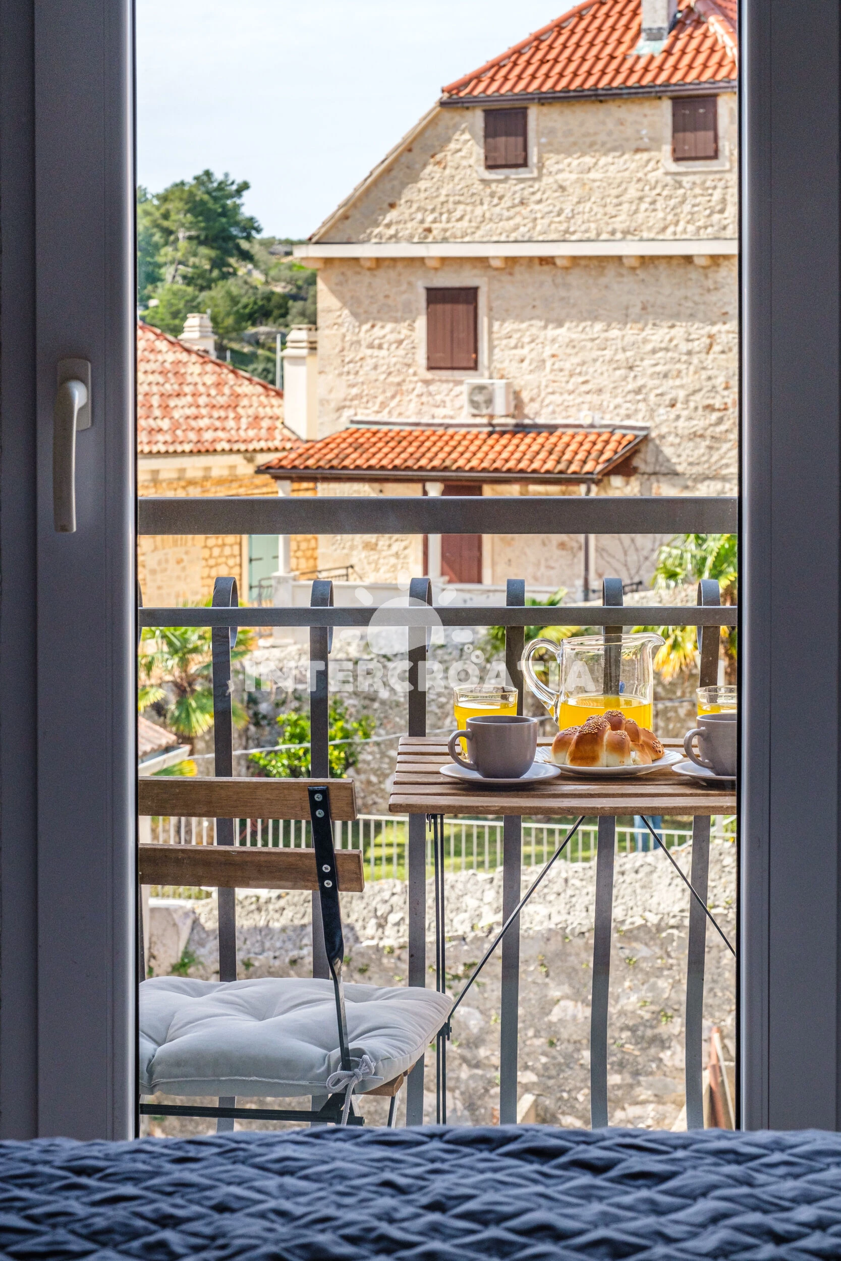Vzdálenosti: Moře 10 m, pláž 1,2 km (oblázková a betonové desky), centrum 10 m, lékárna 50 m, bar 100 m, marina 100 m, směnárna 200 m, pošta 200 m, supermarket 200 m, restaurace 200 m, ambulance 20 km, trajekt (Supetar) 20 km, čerpací stanice 20 km, banka 20 km, letiště (Bol (otok Brač)) 33 km,