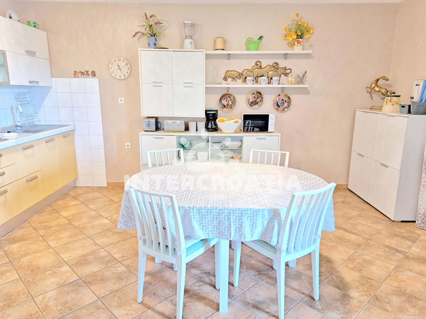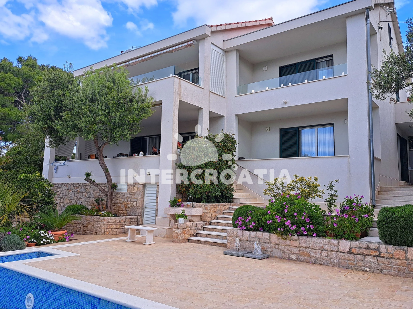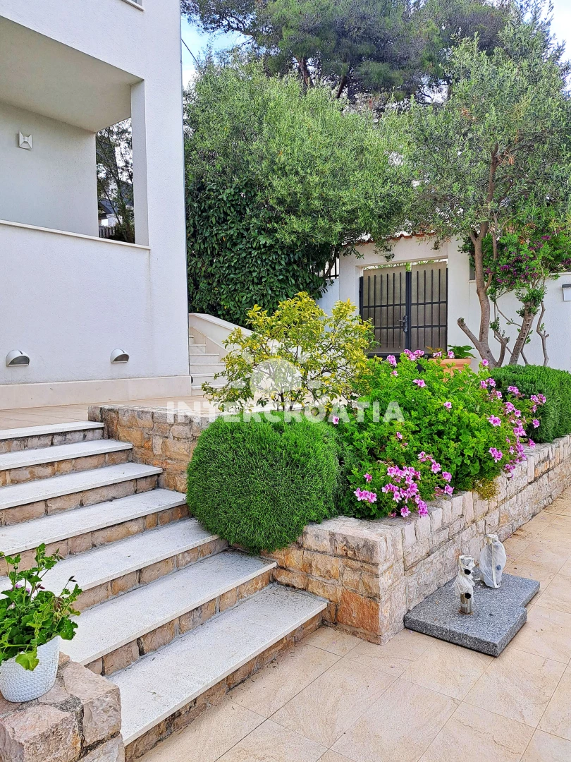 Apartmán se nachází 800 m od moře a pláže. Pláž je oblázková a betonové desky. Apartmán disponuje bazénem s lehátky pro ubytované hosty. U objektu je k dispozici společná zahrada s posezením a grilem. Parkování je před domem.