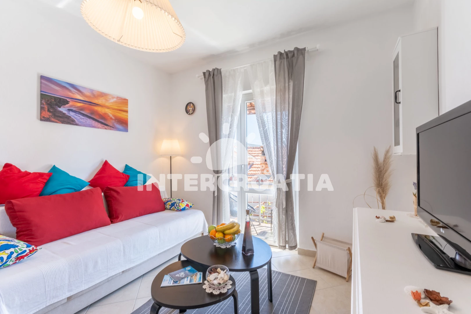 Apartmán se nachází 300 m od moře a pláže. Pláž je písčitá, skalnatá, oblázková, větší kamení a betonové desky. U objektu je k dispozici společná zahrada s posezením a grilem. Parkování je před domem.