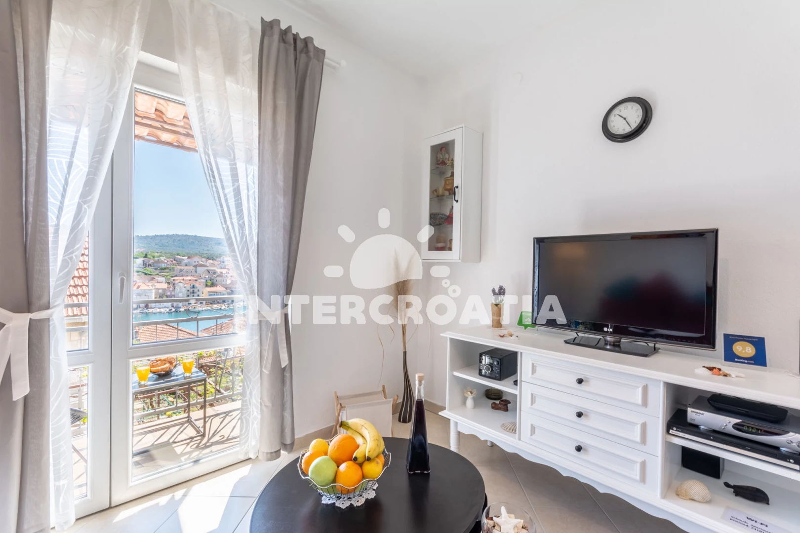 Vzdálenosti: Moře 50 m, pláž 300 m (písčitá, skalnatá, oblázková, větší kamení a betonové desky), restaurace 50 m, lékárna 50 m, pošta 100 m, směnárna 100 m, půjčovna motorových člunů 100 m, supermarket 100 m, bar 100 m, centrum 150 m, muzeum 150 m, potápění 300 m, tenisové kurty 300 m, půjčovna kol 300 m, veřejná doprava 300 m, ambulance 300 m, čerpací stanice 1 km, trajekt (Supetar) 20 km, banka 20 km, letiště (Bol (otok Brač)) 30 km,