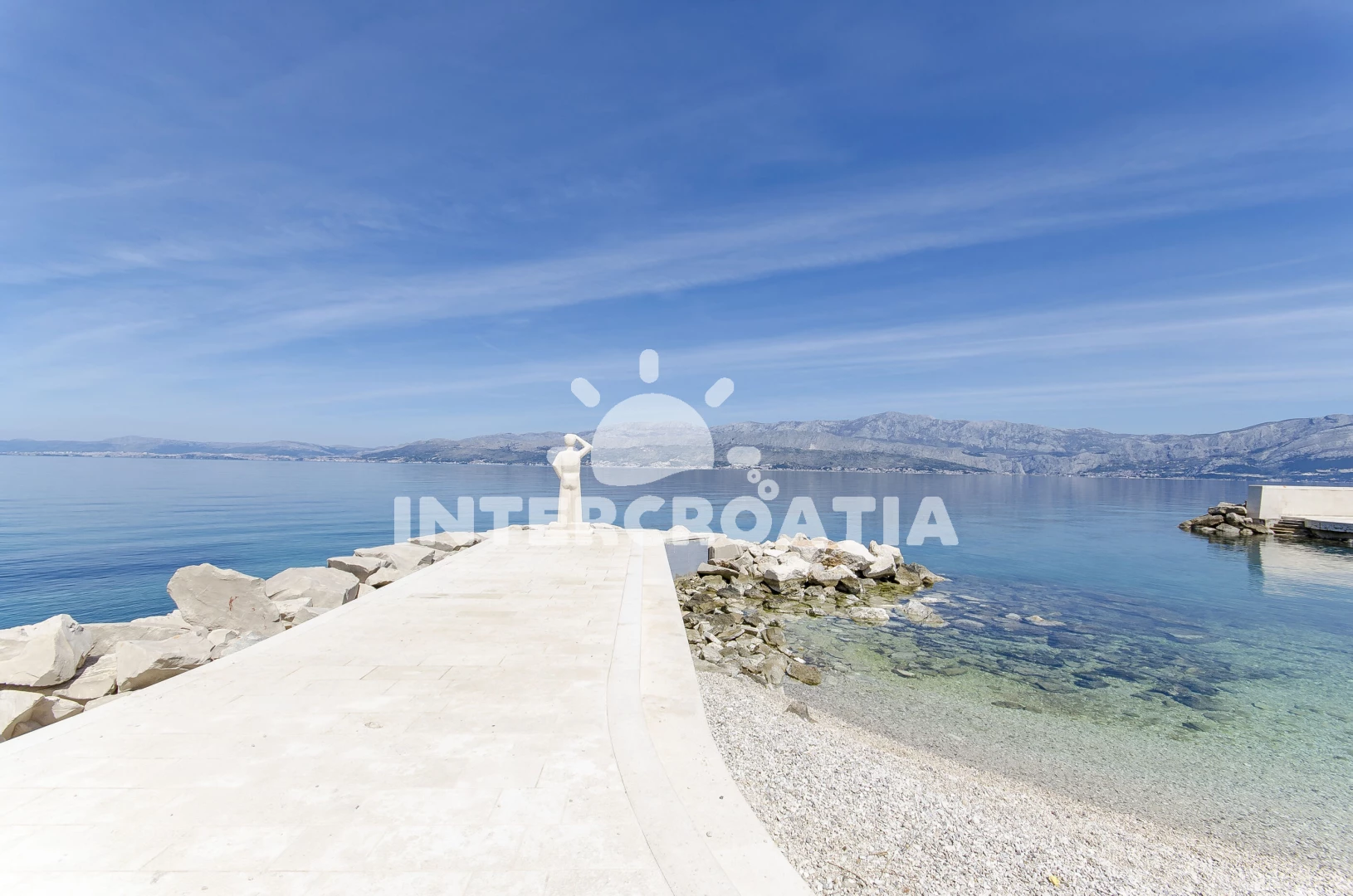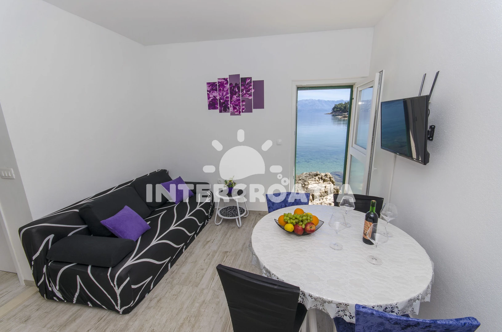 Vzdálenosti: Moře 1 m, pláž 5 m (oblázky), centrum 10 m, bar 20 m, restaurace 20 m, supermarket 100 m, směnárna 100 m, pošta 100 m, lékárna 150 m, tenisové kurty 300 m, půjčovna motorových člunů 300 m, ambulance 300 m, půjčovna kol 300 m, veřejná doprava 300 m, banka 9 km, čerpací stanice 9 km, trajekt (Supetar) 9 km,