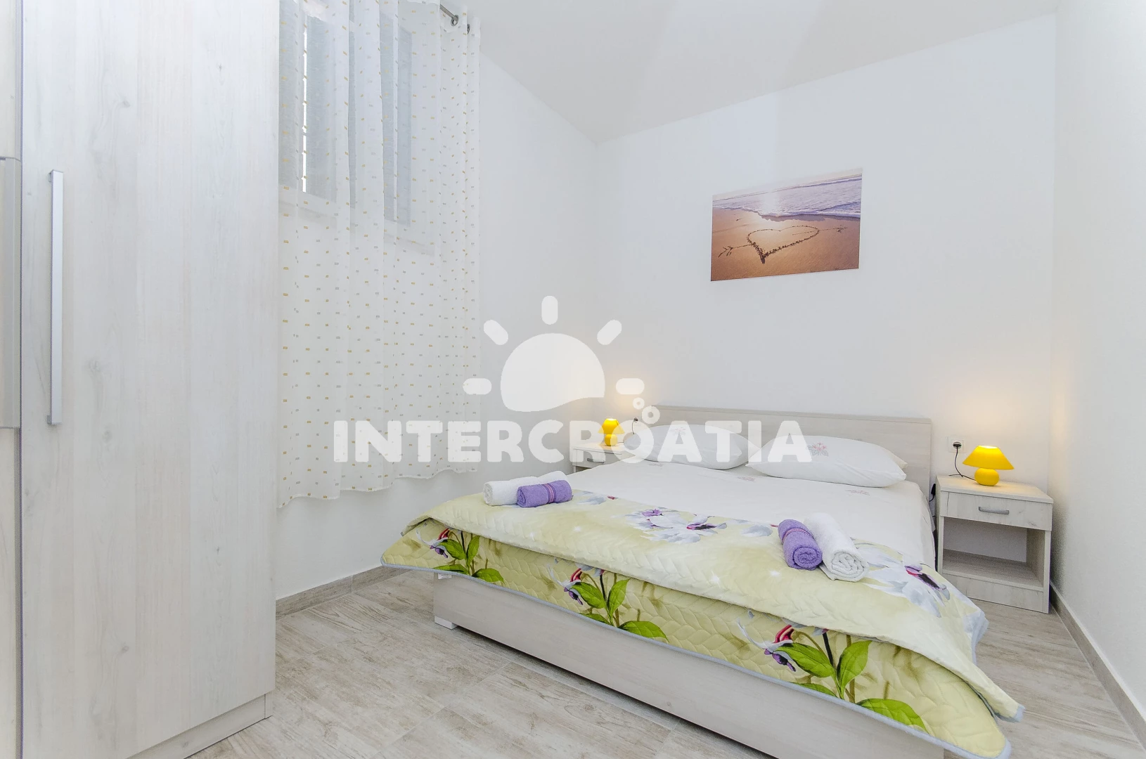 Apartmán (43 m2) s výhledem na moře. Nachází se v přízemí objektu. Apartmán má 2 ložnice a je vhodný pro až 4 osoby. Kuchyňská linka je vybavena varnou deskou, troubou, toustovačem, myčkou na nádobí, mikrovlnnou troubou, rychlovarnou konvicí, nádobím, lednicí, mrazákem. K dispozici televize, žehlička. První ložnice s dvoulůžkem. Druhá ložnice s dvoulůžkem. Koupelna se sprchovým koutem, umyvadlem, fénem a WC.
