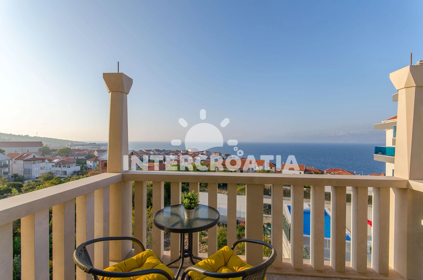 Apartmán (35 m2) s terasou, a výhledem na moře. Nachází se v 1. patře objektu. Apartmán má 1 ložnici a je vhodný pro až 2 osoby. Kuchyňská linka je vybavena varnou deskou, troubou, myčkou na nádobí, mikrovlnnou troubou, nádobím, lednicí. K dispozici televize. Ložnice s dvoulůžkem. Koupelna se sprchovým koutem, umyvadlem, fénem a WC.