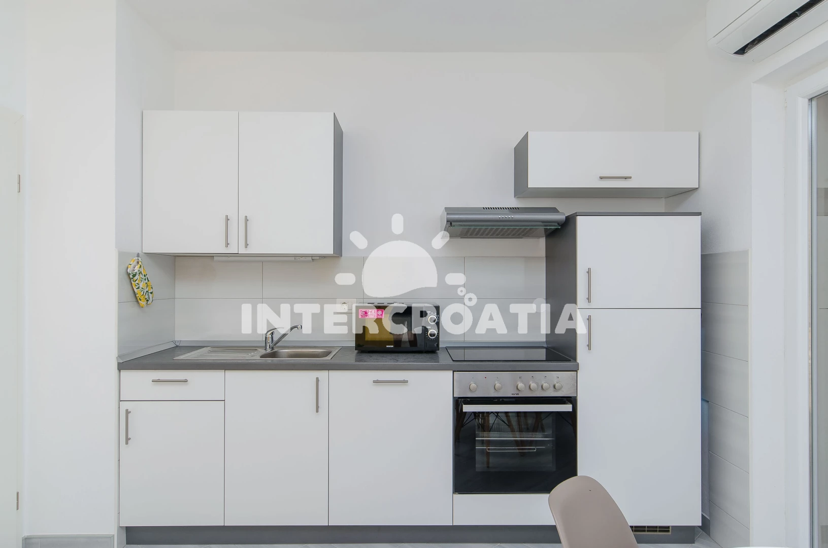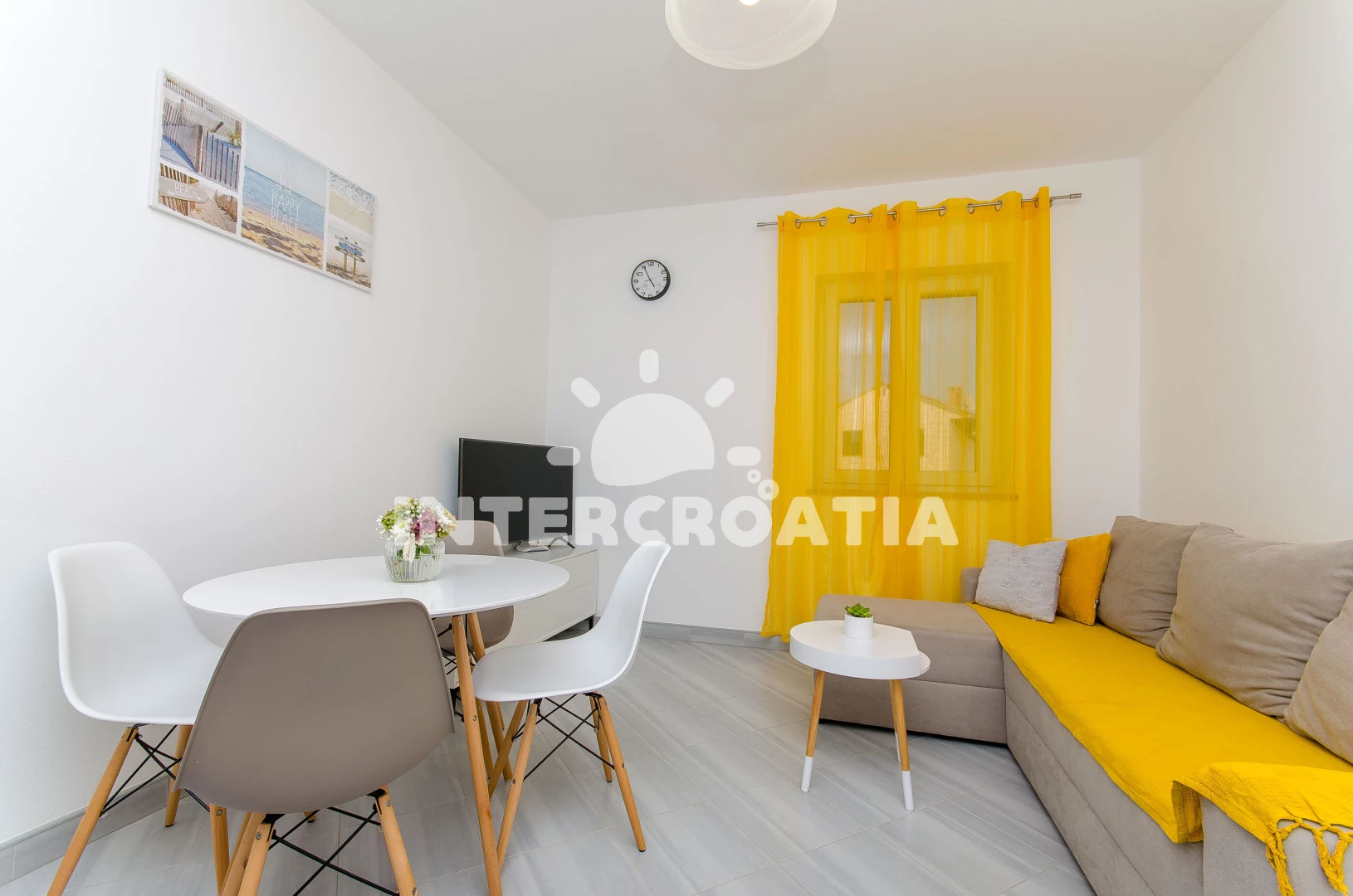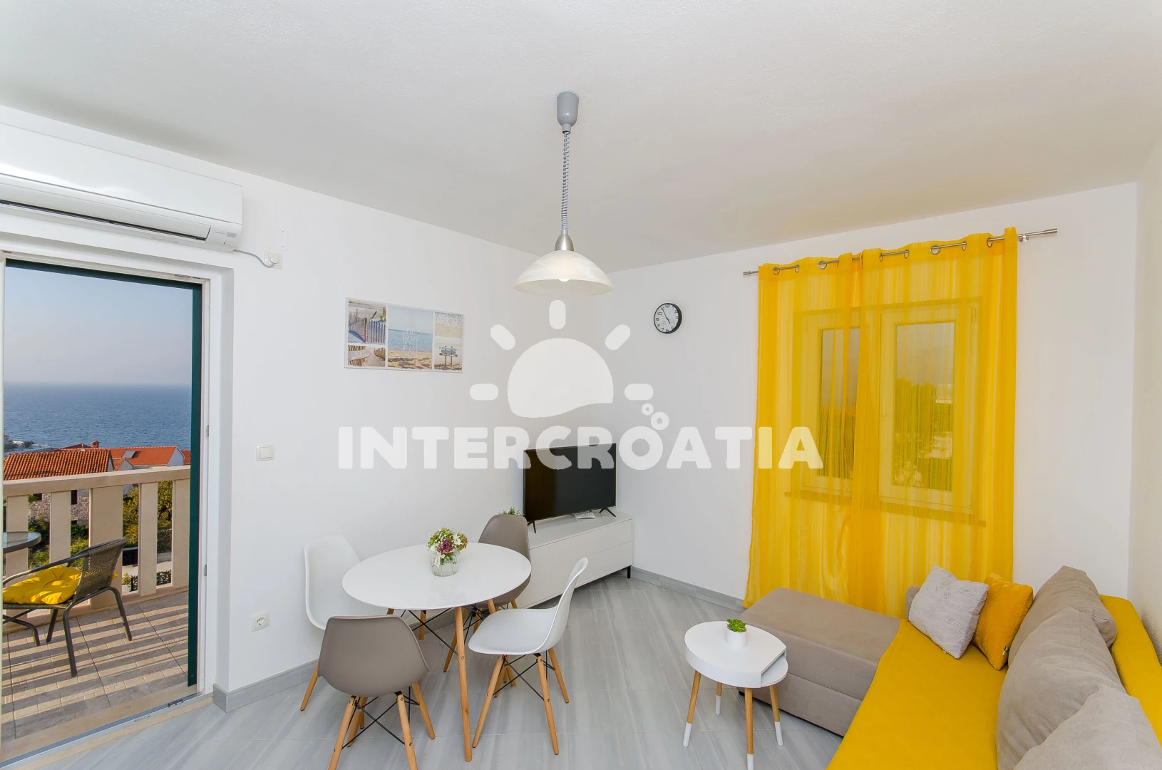 Apartmán (35 m2) s terasou, a výhledem na moře. Nachází se v 1. patře objektu. Apartmán má 1 ložnici a je vhodný pro až 2 osoby. Kuchyňská linka je vybavena varnou deskou, troubou, myčkou na nádobí,…