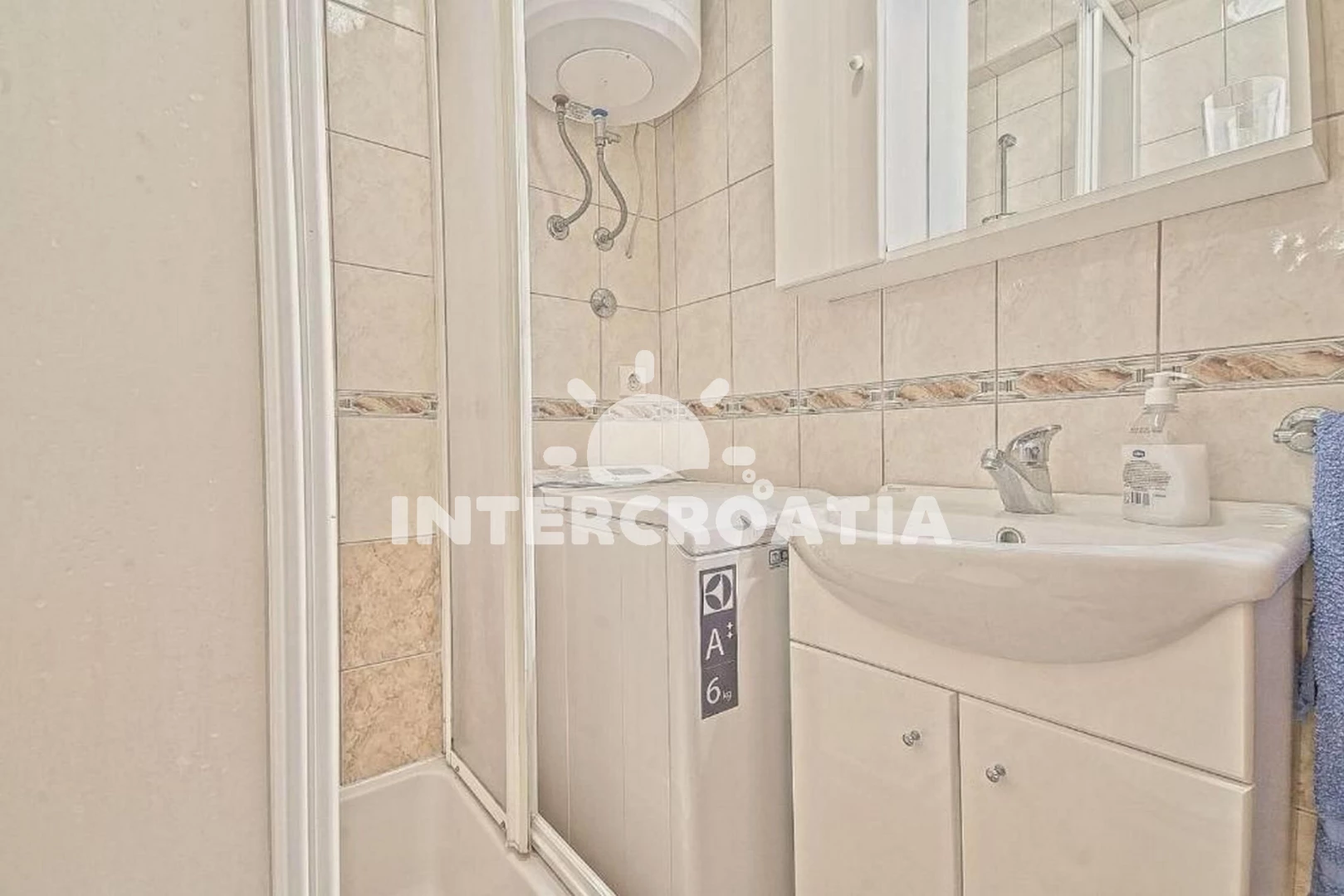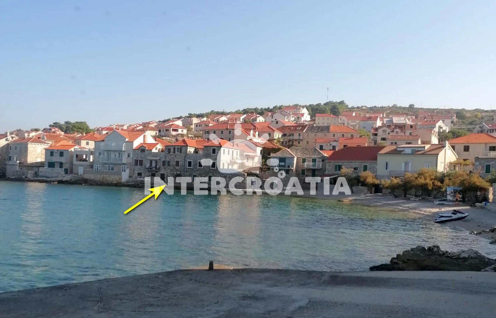 Vzdálenosti: Moře 1 m, pláž 20 m (oblázková a betonové desky), restaurace 50 m, bar 50 m, centrum 50 m, supermarket 50 m, veřejná doprava 300 m, lékárna 300 m, směnárna 400 m, ambulance 400 m, pošta 400 m, půjčovna kol 400 m, potápění 9 km, diskotéka 9 km, čerpací stanice 9 km, banka 9 km, trajekt (Supetar) 9 km, tenisové kurty 9 km, letiště (Bol (otok Brač)) 300 km,