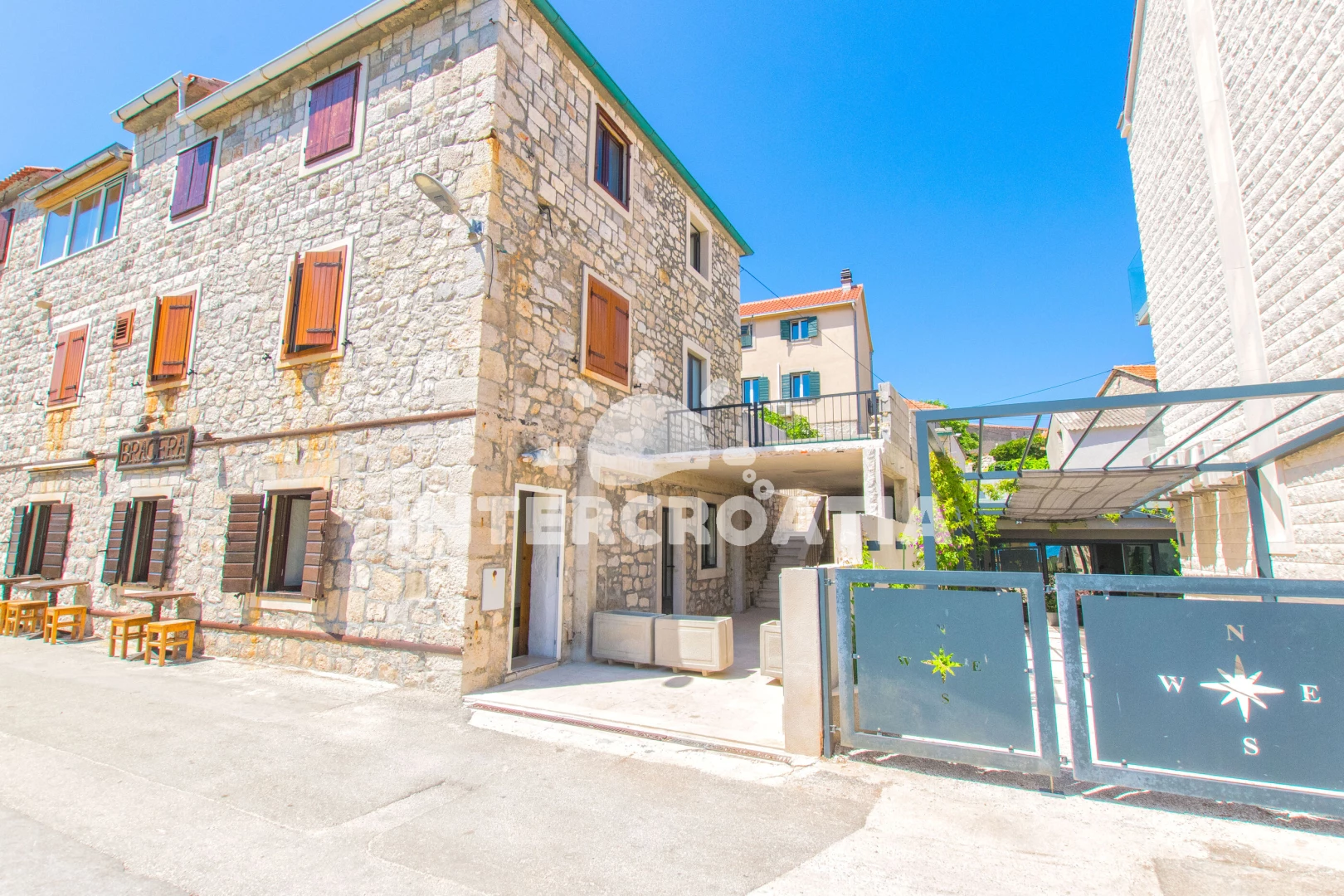 Vzdálenosti: Moře 20 m, pláž 20 m (oblázky), centrum 10 m, bar 20 m, restaurace 20 m, směnárna 100 m, pošta 100 m, supermarket 100 m, lékárna 150 m, ambulance 300 m, veřejná doprava 300 m, půjčovna kol 300 m, půjčovna motorových člunů 300 m, čerpací stanice 9 km, banka 9 km, trajekt (Supetar) 9 km, letiště (Bol (otok Brač)) 29 km,