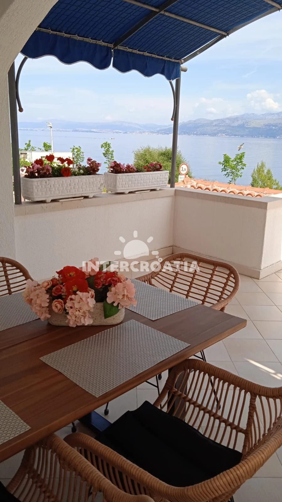 Apartmán (90 m2) s terasou, a výhledem na moře. Nachází se v 1. patře objektu. Apartmán má 2 ložnice a je vhodný pro až 5 osob. Kuchyňská linka je vybavena varnou deskou, kávovarem, troubou,…