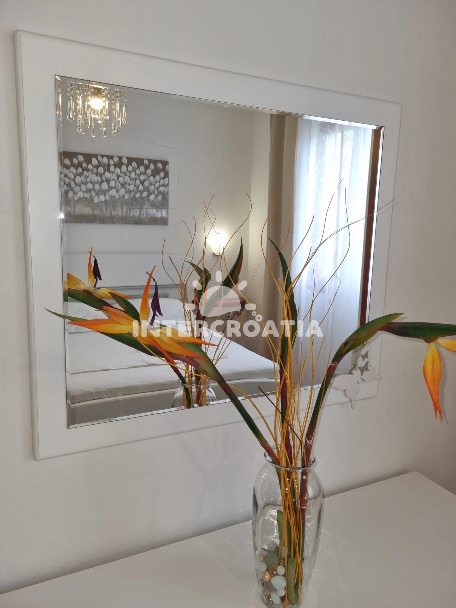 Apartmán (90 m2) s terasou, a výhledem na moře. Nachází se v 1. patře objektu. Apartmán má 2 ložnice a je vhodný pro až 5 osob. Kuchyňská linka je vybavena varnou deskou, kávovarem, troubou, toustovačem, myčkou na nádobí, rychlovarnou konvicí, nádobím, lednicí, mrazákem. K dispozici televize se satelitním programem, radio, žehlička. První ložnice s dvoulůžkem, přistýlkou. Druhá ložnice s dvoulůžkem. Koupelna se sprchovým koutem, umyvadlem, fénem a WC. Dále samostatné WC. Hostům je k dispozici parkování u objektu zdarma.
