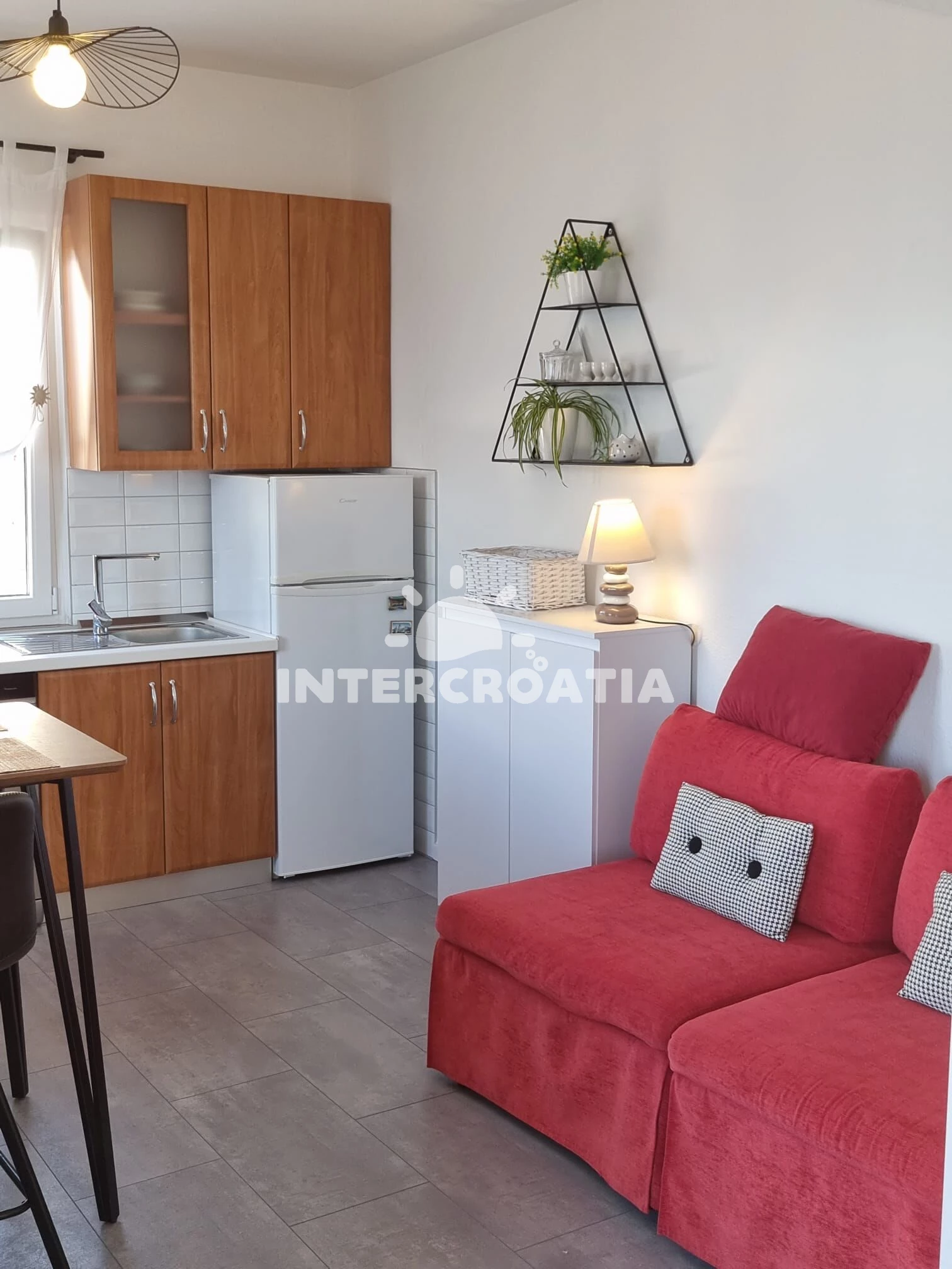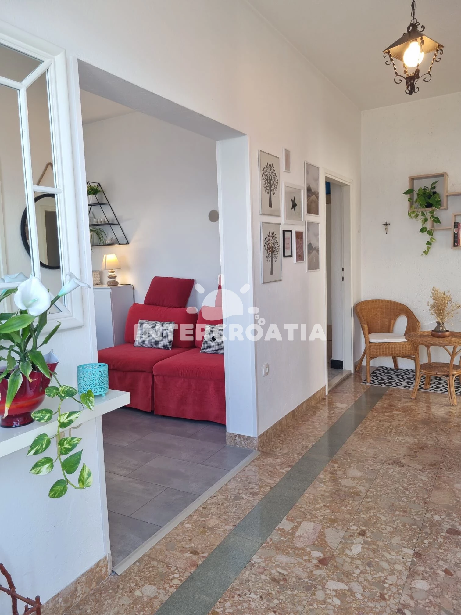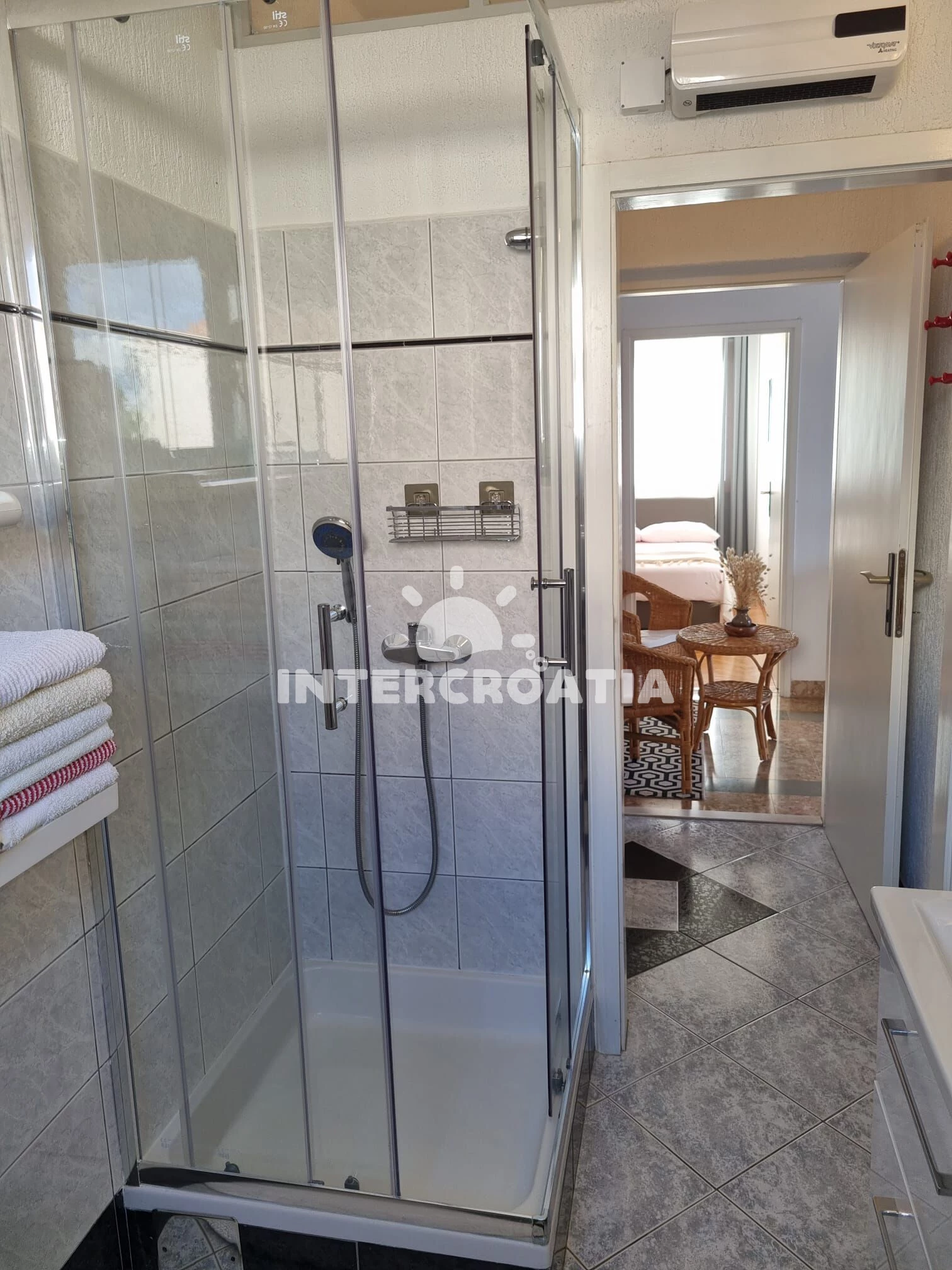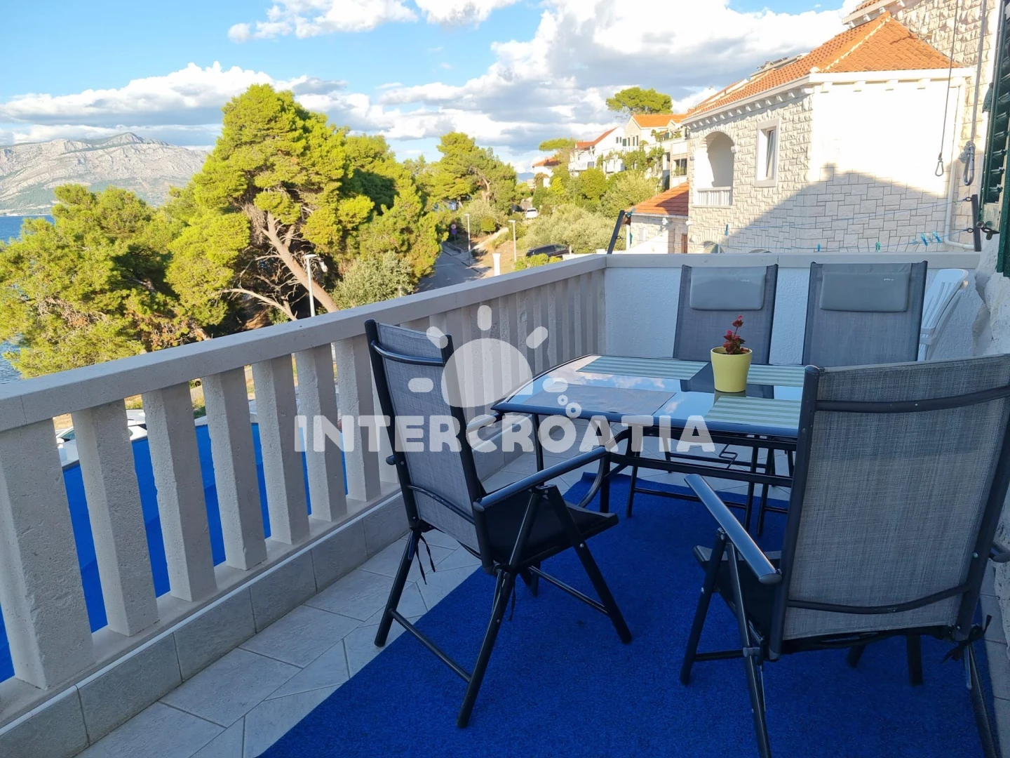Apartmán (60 m2) s terasou, a výhledem na moře. Nachází se v 1. patře objektu. Apartmán má 2 ložnice a je vhodný pro až 4 osoby. Kuchyňská linka je vybavena varnou deskou, troubou, kávovarem,…